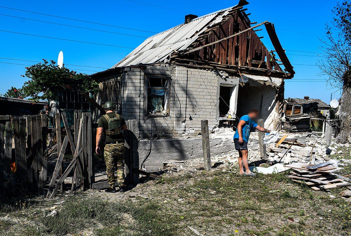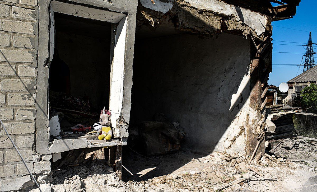 Как стало известно, поврежденный ракетой дом не пригоден для проживания. В дыре от удара видны запыленные игрушки.