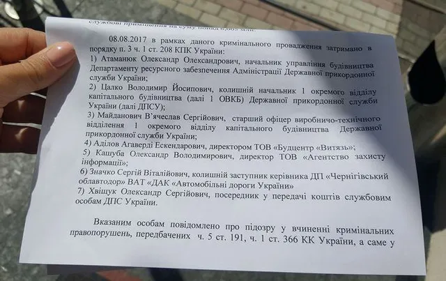 Сейчас им вручают уведомление о подозрении, передает корреспондент 24 Канала в прямом эфире. В хищении средств, выделенных на проект, подозревают в частности должностных лиц ГПСУ, то есть людей, которые непосредственно отвечали за выполнение плана.