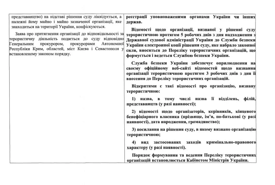 Также решение предусматривает введение перечня организаций, признанных террористическими,"который будет вести СБУ".