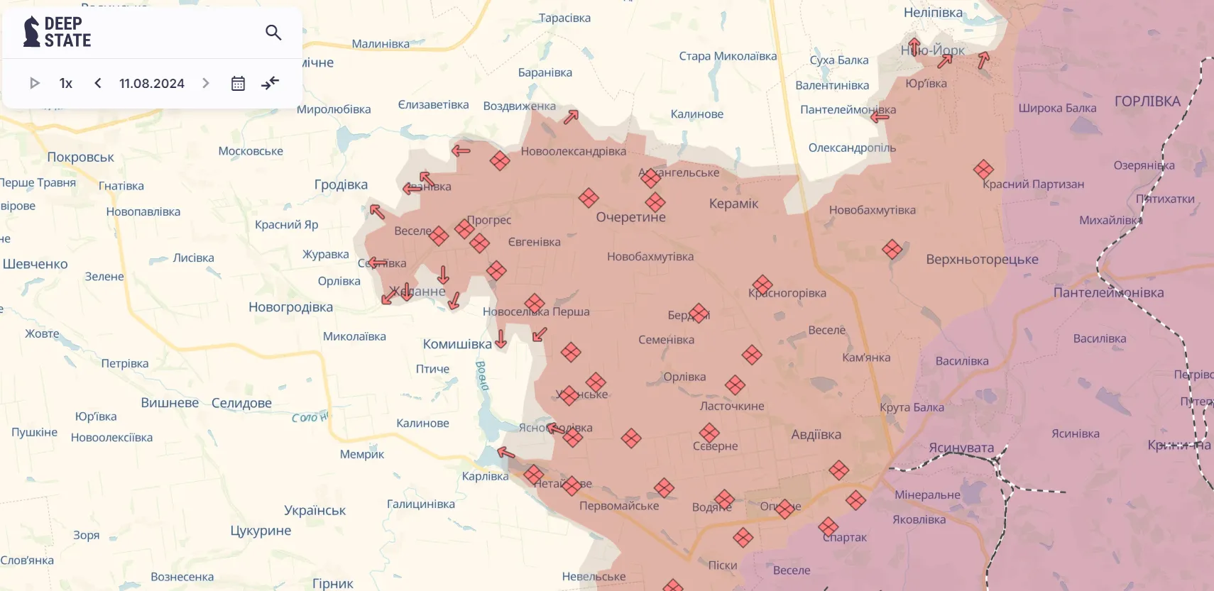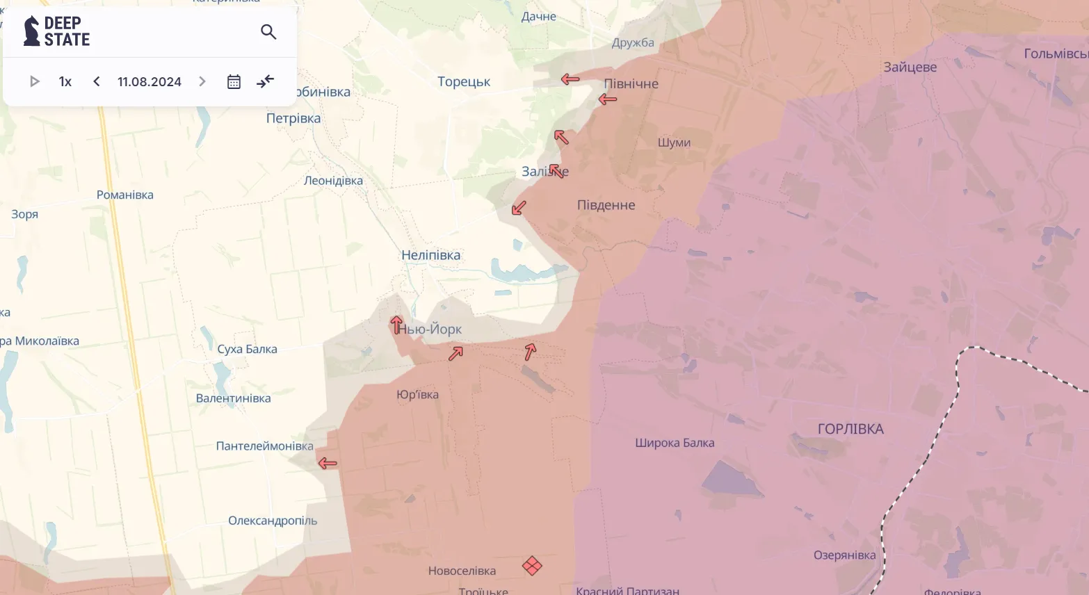 Оккупанты штурмуют Невельское, что севернее самой Красногоровки, чтобы выбить ВСУ из города. На этой неделе россияне поспешно заявили, что захватили село, однако бойцы 11 батальона эту информацию не подтвердили. Изменений фронта возле Невского не зафиксировано.