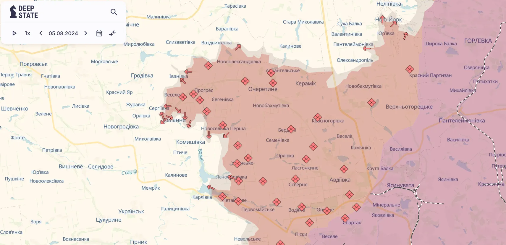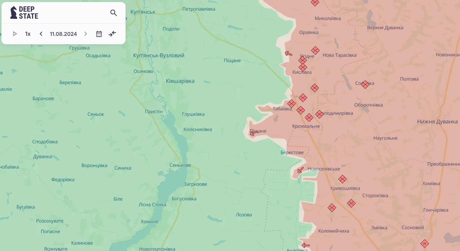 По информации DeepState, в первый день прорыва были освобождены по меньшей мере три населенных пункта: Свердликово, Дарьино и Олешня. Аналитики отметили, что карта обновляется с задержками, чтобы не мешать боевой работе.