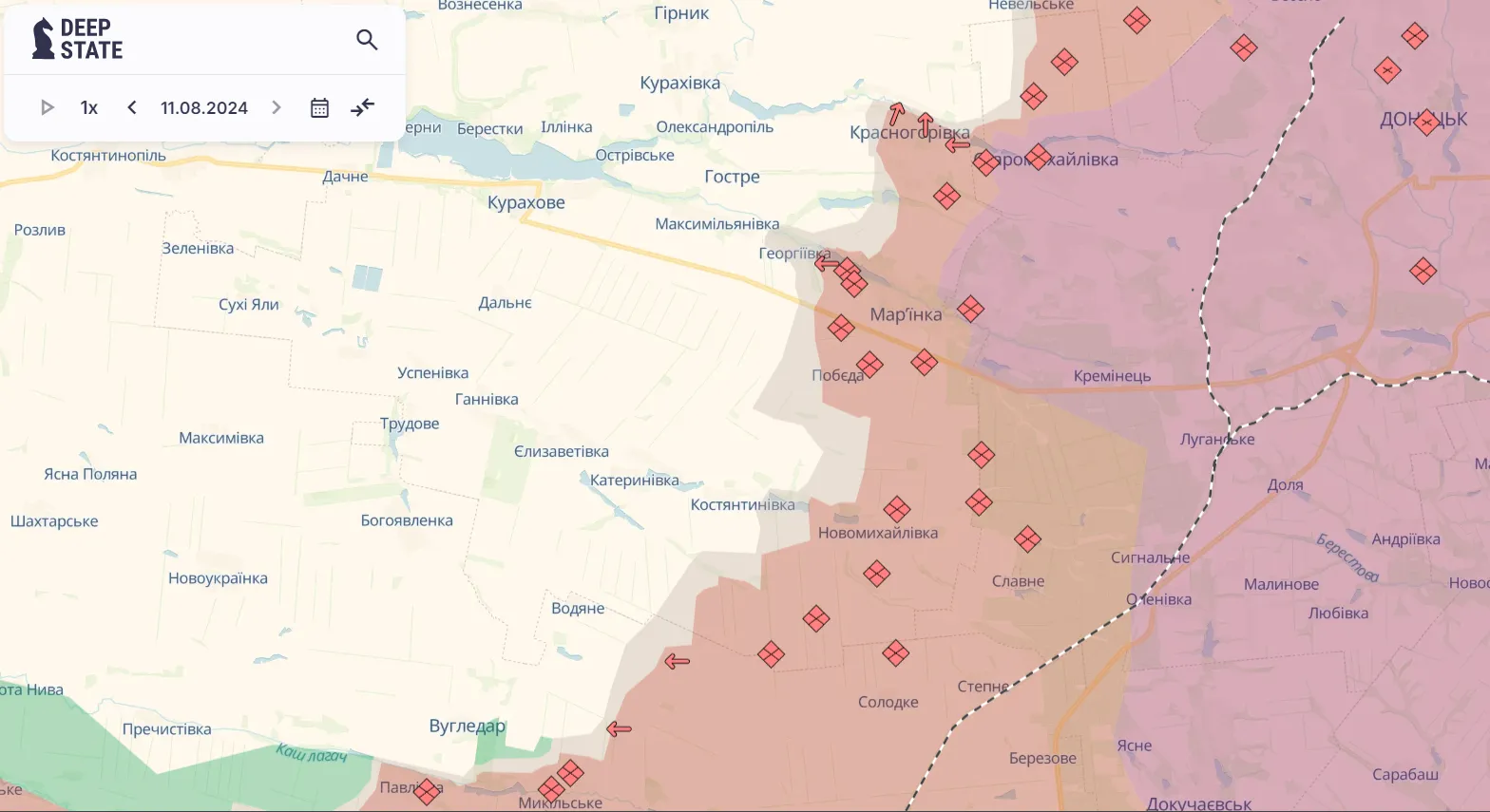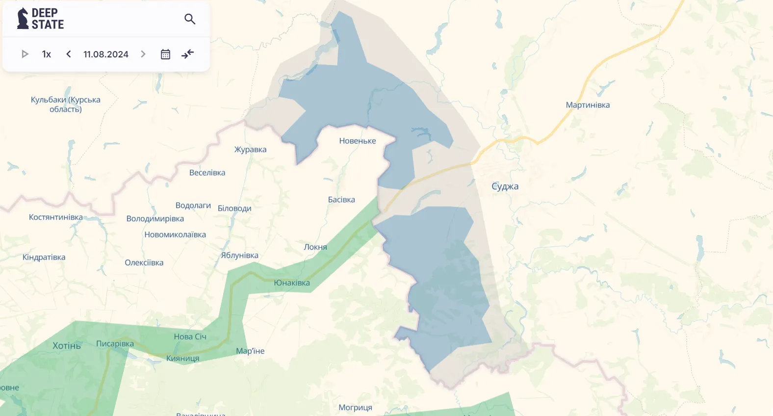 Вечером 9 августа в сети появилось видео с украинскими военными на фоне стратегического объекта "Газпрома". Они заявили, что город Суджа Курской области находится под контролем ВСУ. Также на этой неделе появились похожие видео из села Гуево Курской области и села Пороз Белгородской области. В то же время, по данным военкоров, бои уже продвинулись значительно глубже.