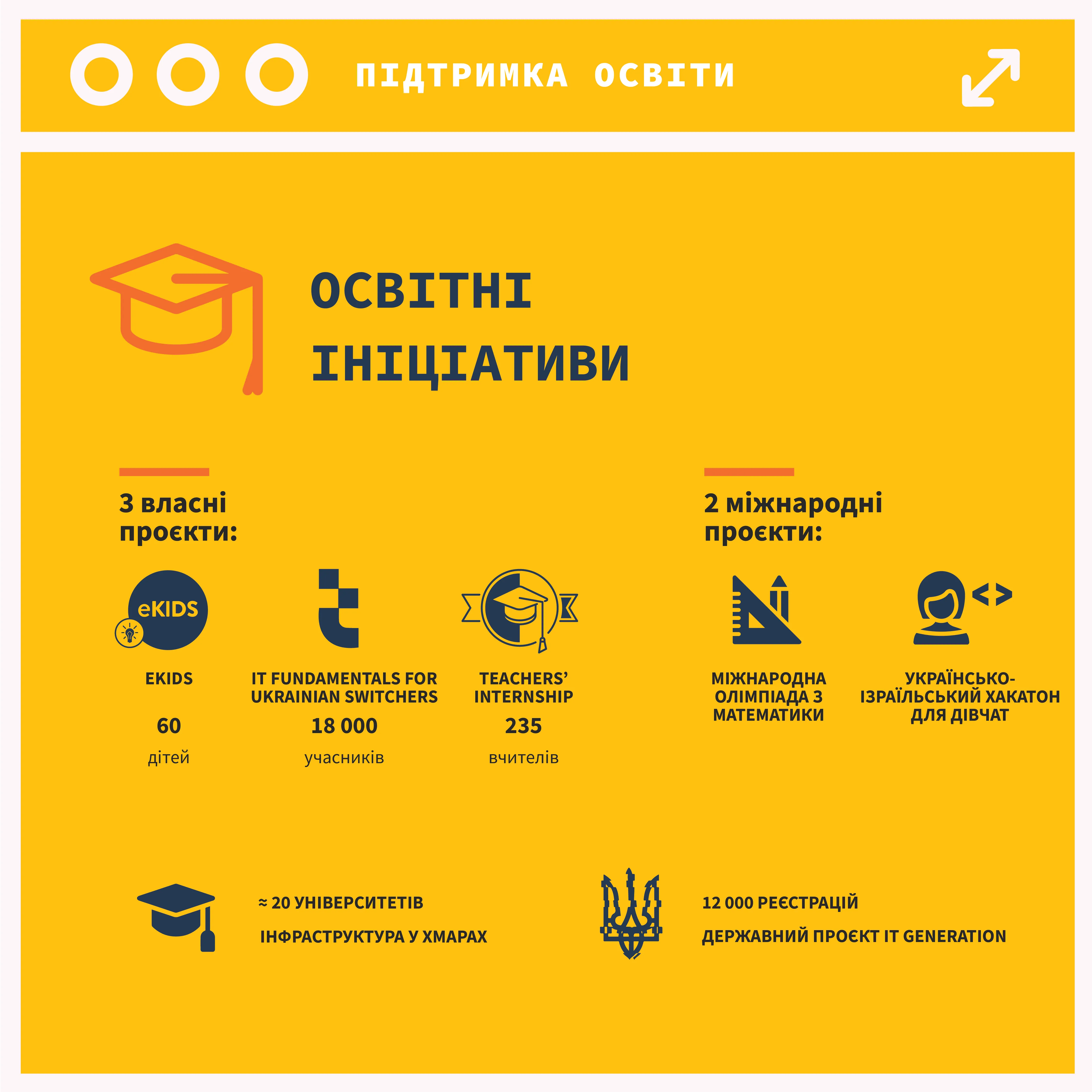 - Эксперты компании также присоединились к проекту Министерства цифровой трансформации IT Generation, цель которого – дать возможность получить украинцам новую профессию в IТ.