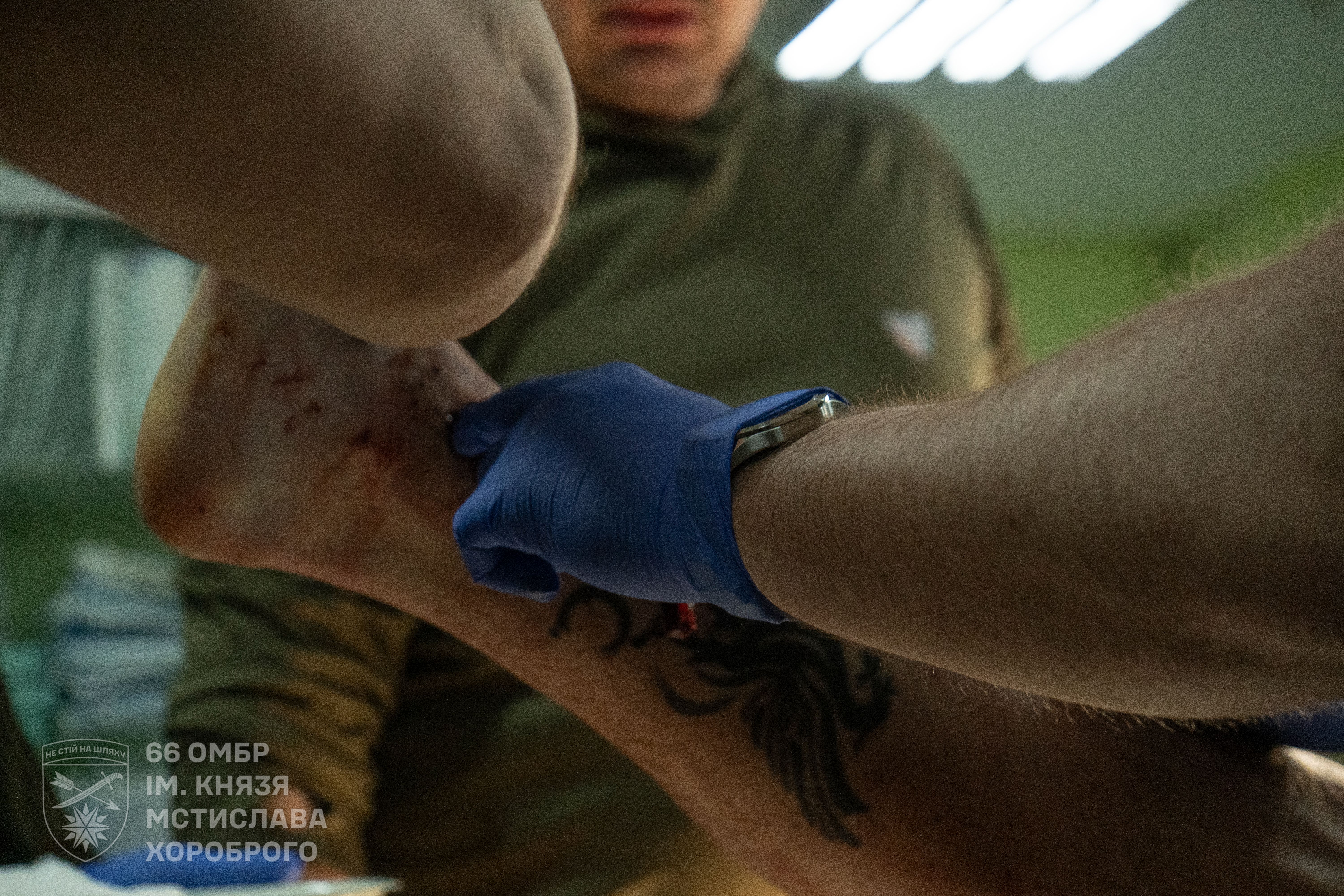Руководит стабилизационным пунктом Алексей Назаришин – начальник медицинской службы 66-й ОМБр. Алексей родом из Запорожья, в гражданской жизни был успешным хирургом, но после начала полномасштабного вторжения присоединился к Вооруженным Силам Украины.