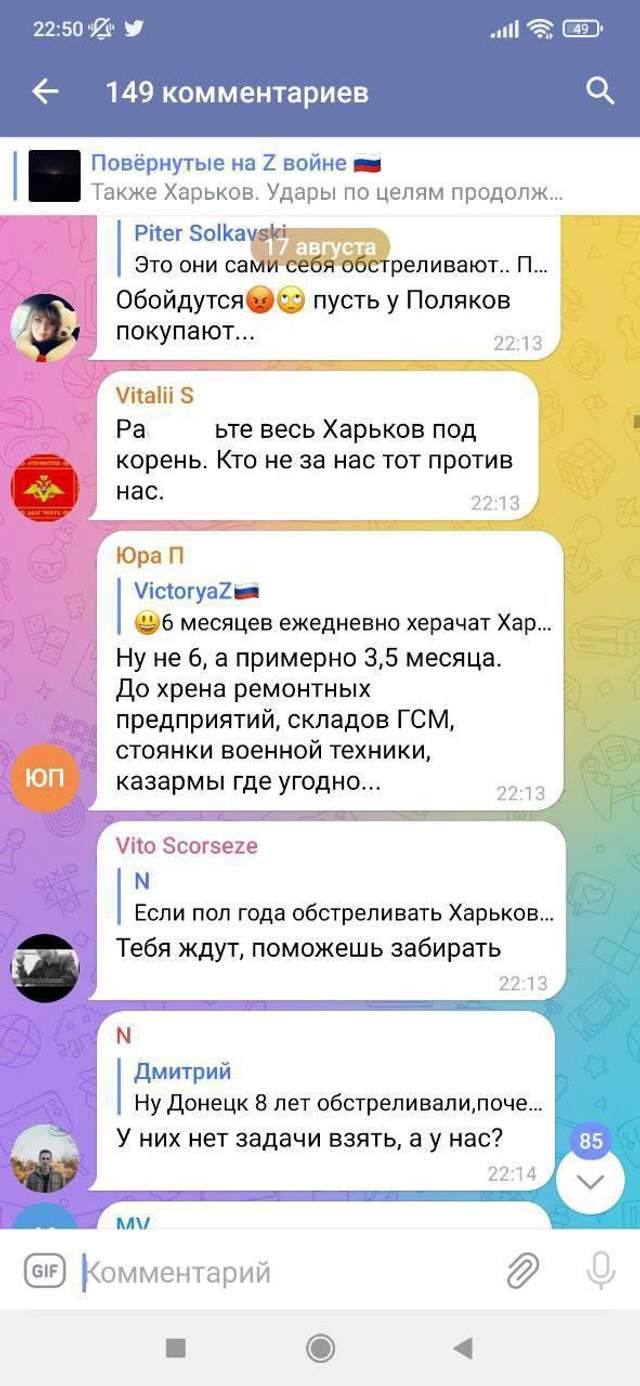 Скрины комментариев "простых россиян, которые ни в чем не виноваты" опубликовал ряд харьковских телеграм-каналов. На цинизм отреагировал также спикер Одесской военной администрации Сергей Братчук. Он опубликовал скриншот, на котором россиянин утверждал, что обстрел Харькова – это "вынужденная мера".