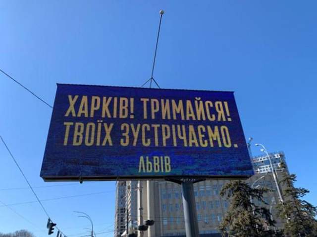 Большая серия бордов была и о том, как один город поддерживает другой. В частности, они появлялись в поддержку Мариуполя, Чернигова со словами "Держись, мы с тобой". На войну в Украине отреагировал и украинский бизнес, который начал создавать креативную рекламу – горючие напитки с коктейлями, реклама тротуарной плитки "Застелим оккупантов".