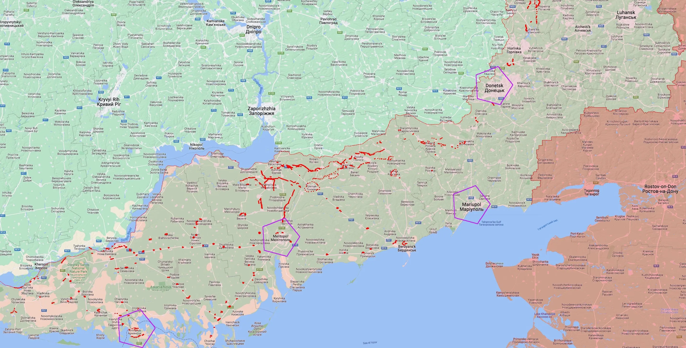 Тайнер пишет, что главные цели Украины на Юге – это Мелитополь и Мариуполь, а второстепенные цели – Перекопский перешеек, чтобы отрезать отступление россиян в Крым, и клещи в тыл Донецка.