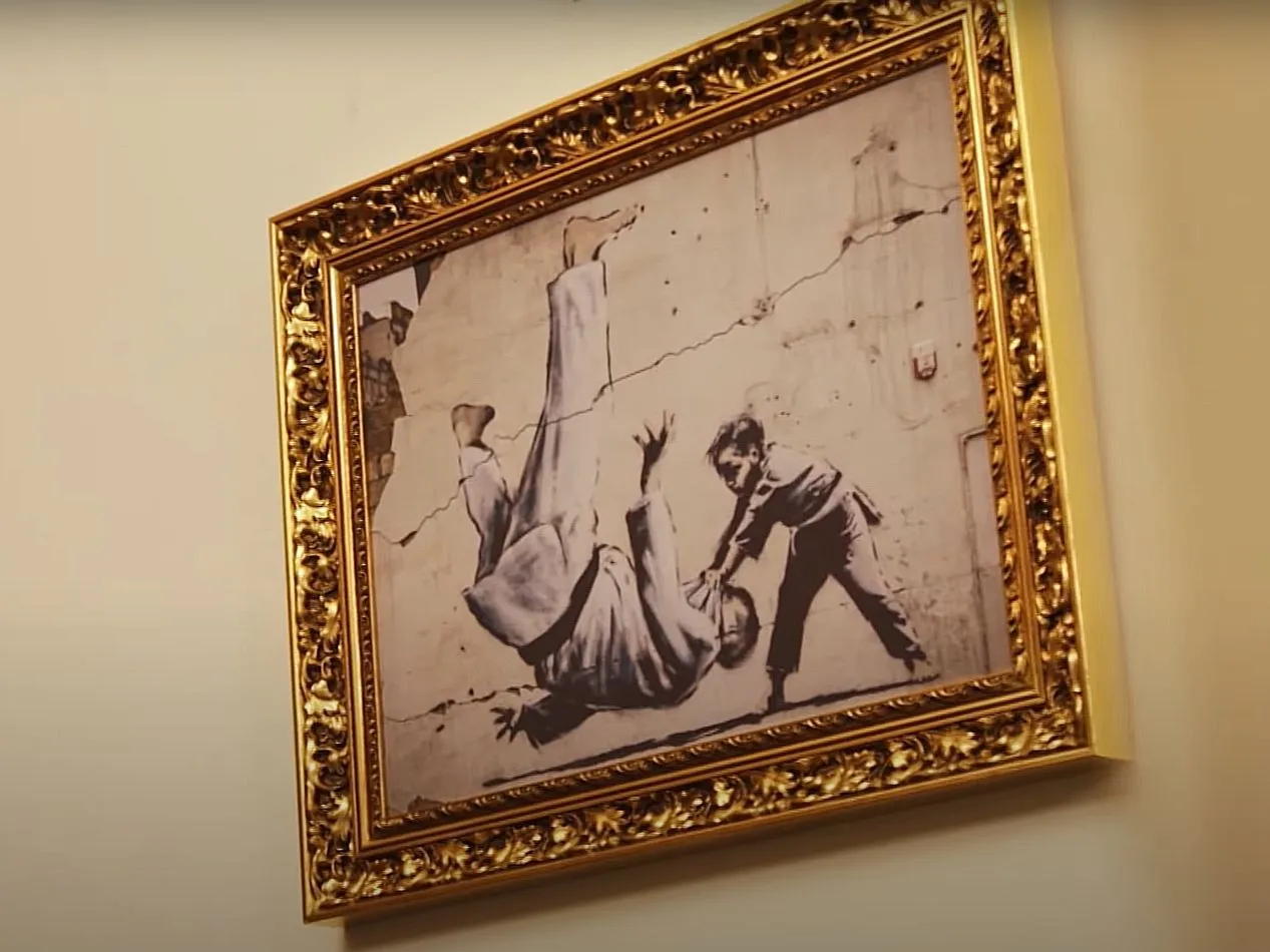 Среди немногих дорогих для него вещей в кабинете он показал маленькую копию картины Бэнкси, подаренной ему на день рождения. погибший в крушении эксминистр МВД Денис Монастырский.