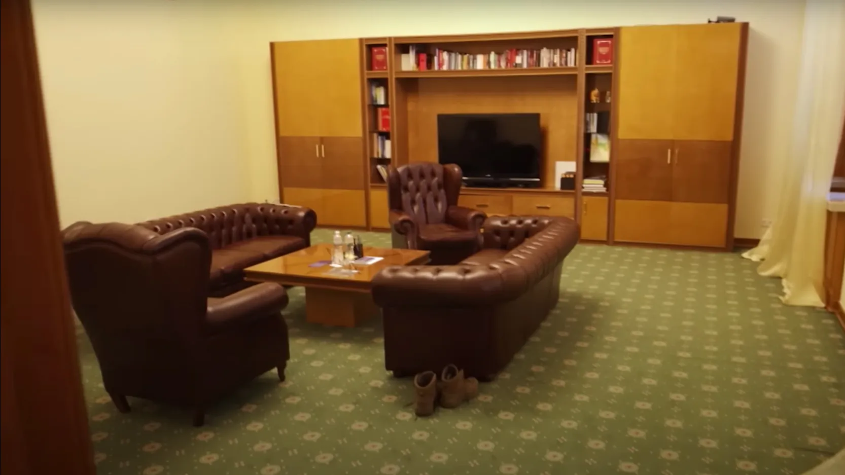 Из зала чиновник ведет журналиста в так называемую комнату отдыха. Комаров сказал, что обстановка там такая же, как и у Владимира Зеленского.