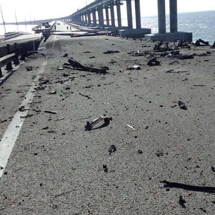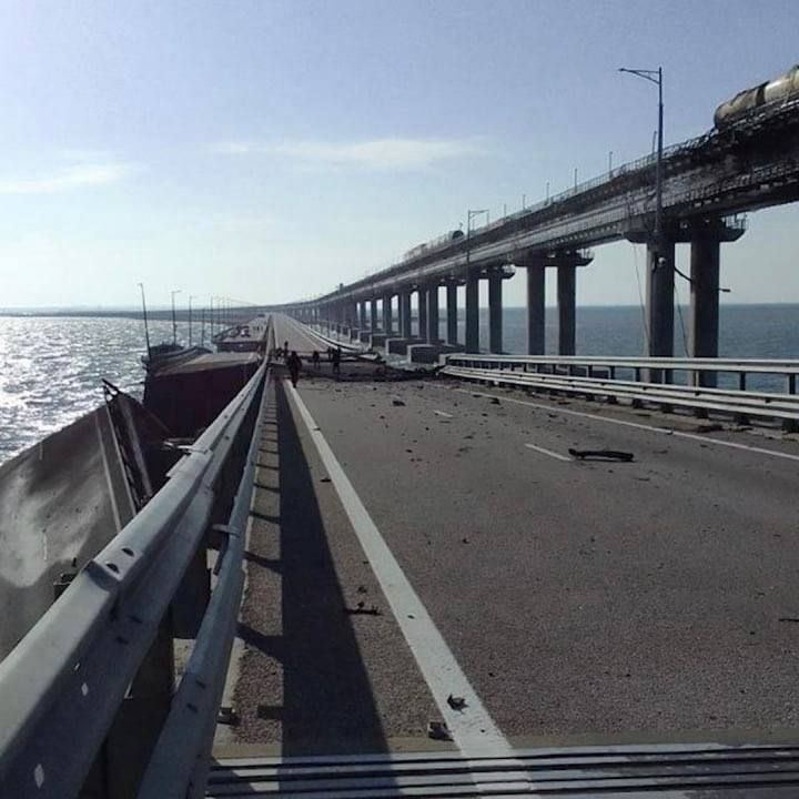 - На взрыв на Крымском мосту уже отреагировали в украинском Минобороны. Там отметили, что Крымский мост, как и утопленный ранее российский крейсер "Москва", – это символы российской "власти" в украинском Крыму, и они исчезли.