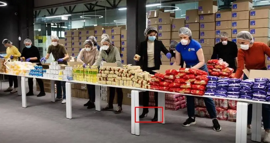 Жена пятого президента фасует коробки с едой на каблуках / Скриншот 24 канал