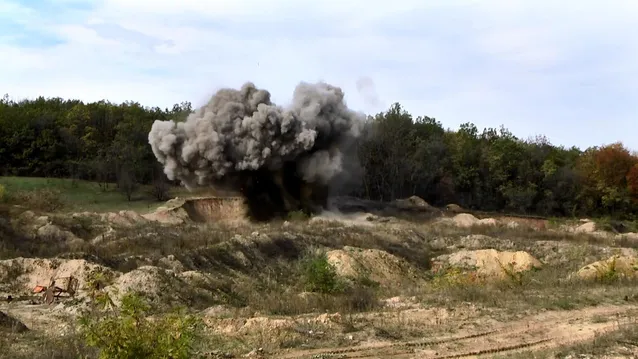 На видео хорошо слышно, как от мощного взрыва на камеру сыпется земля – от взрывной волны все подлетает в высоту.