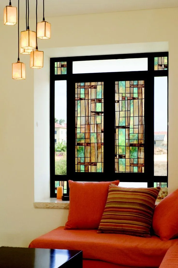 На стекло можно наклеить современную витражную пленку, которая летом защитит от солнца.