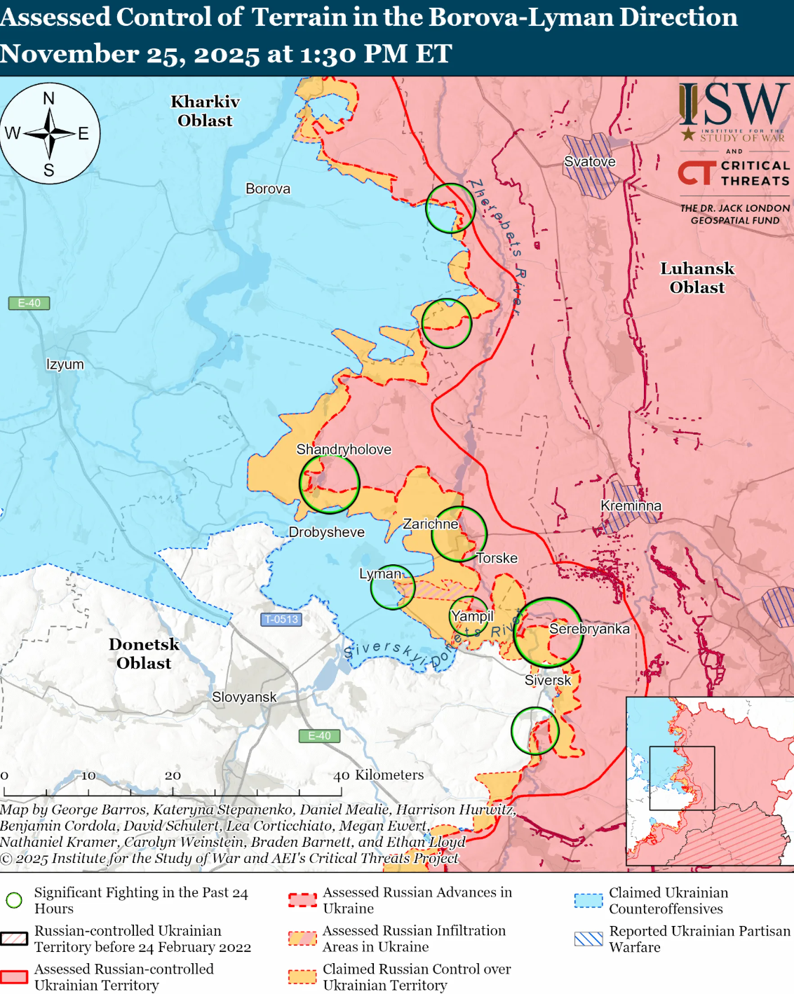 - Армия Кремля продолжила наступательные операции на Купянском направлении, но подтвержденного прогресса не достигла.
