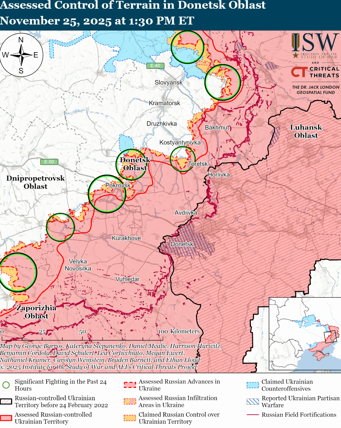 - Однако российские войска недавно продвинулись на Новопавловском направлении. Геолокационные видеозаписи, опубликованные 25 ноября, свидетельствуют о том, что захватчики продвинулись на юго-западную окраину Новопавловки.