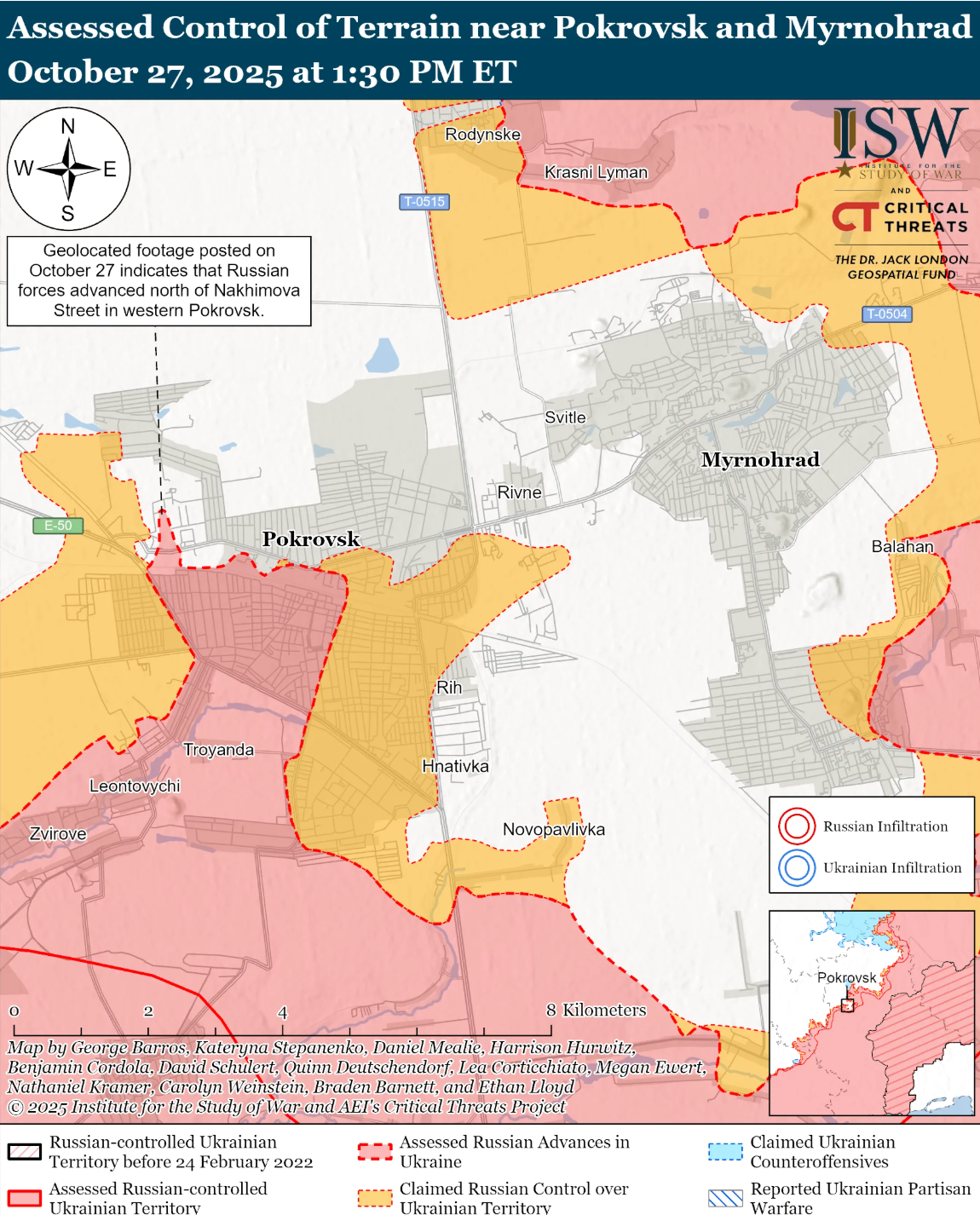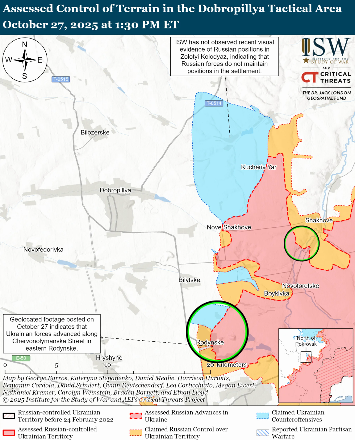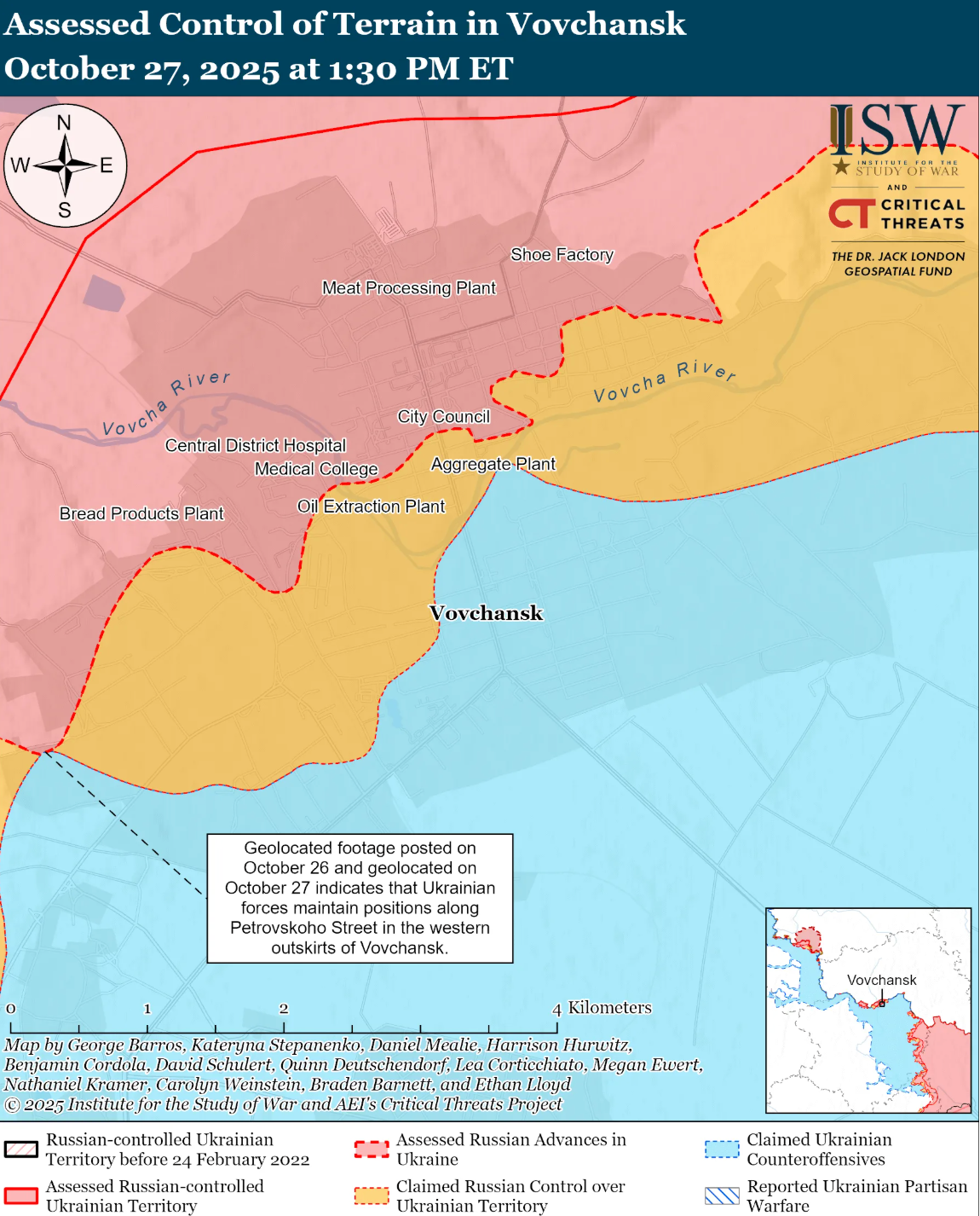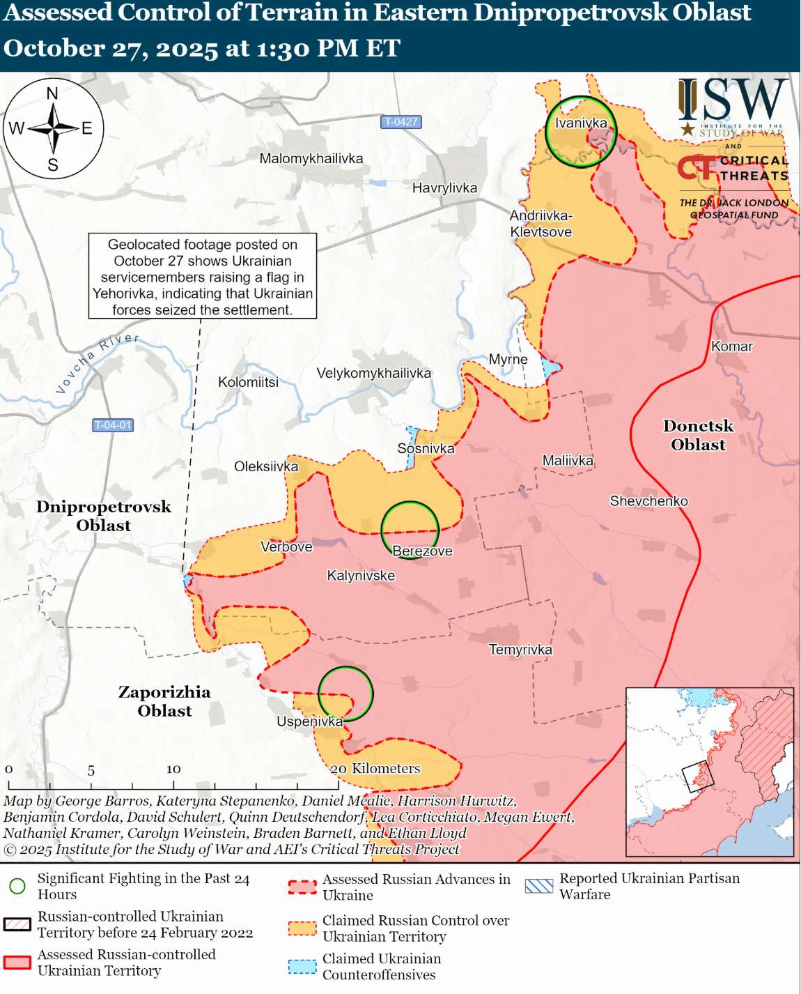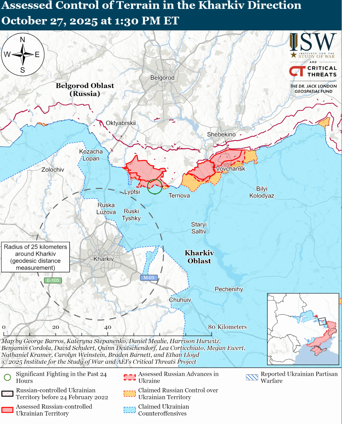 По состоянию на 27 октября, как отмечают в Институте изучения войны, ни российские, ни украинские источники не сообщали о наземной активности в направлении Боровой.