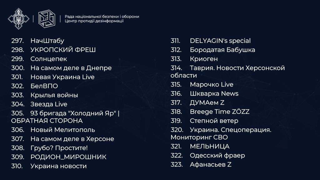 Стоит отметить, что эти списки помогут получить достоверную информацию из надежных источников, а также избегать каналов, которые являются инструментом распространения вражеской дезинформации, манипуляций и лжи.