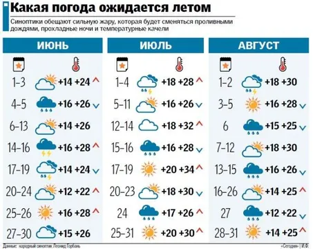 Согласно прогнозу Мартазиновой, июль будет сухим и очень жарким — +30-34 градуса.