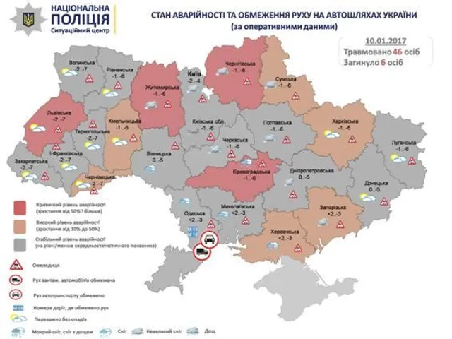 По уровню аварийности критической остается ситуация в пяти областях: Львовской, Житомирской, Черниговской и Кировоградской.