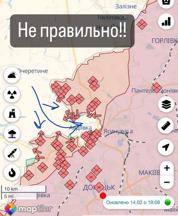 Кротевич утверждает, что нынешняя тактика обороны Авдеевки является неправильной / DeepState / Телеграм-канал военного