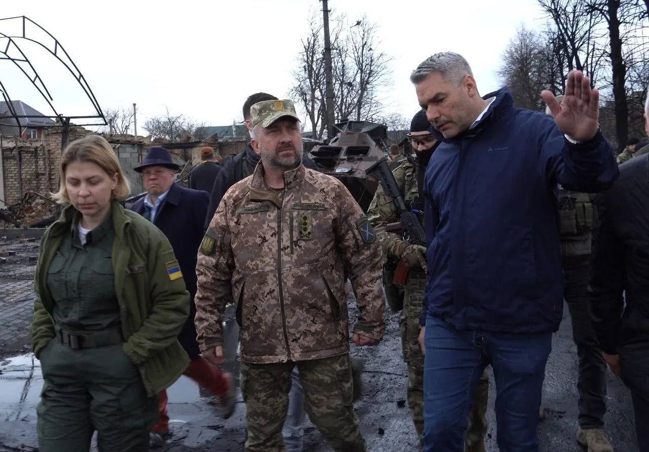 Канцлер Австрии Негаммер также посетил Бучу / Фото с телеграм-канала главы Киевской ОГА