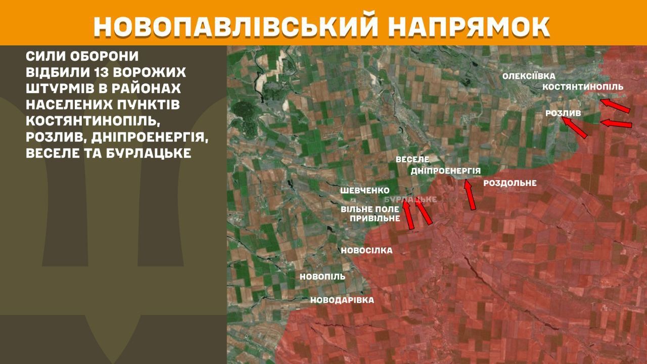 На Новопавловском – Силы обороны отбили 13 вражеских штурмов в районах Константинополя, Разлива, Днепроэнергии, Веселого и Бурлацкого.