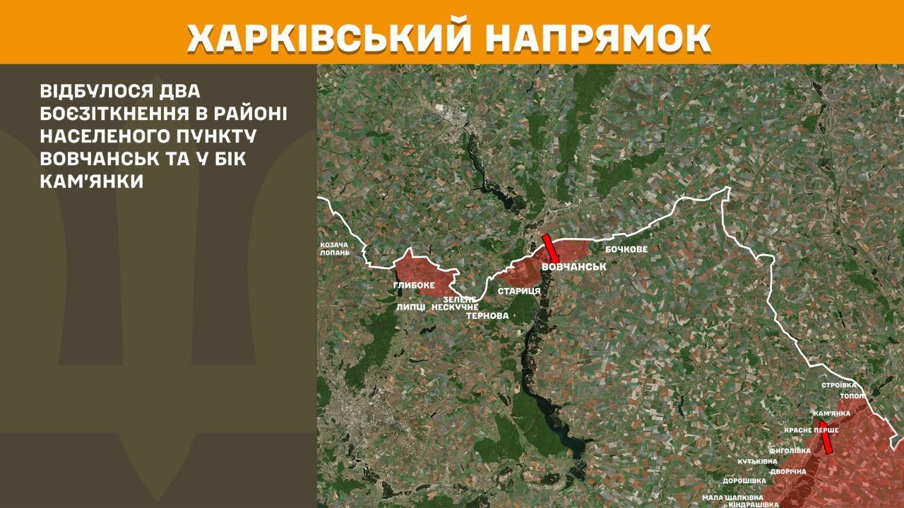 На Харьковском направлении произошло 2 боестолкновения в районе Волчанска и в сторону Каменки.