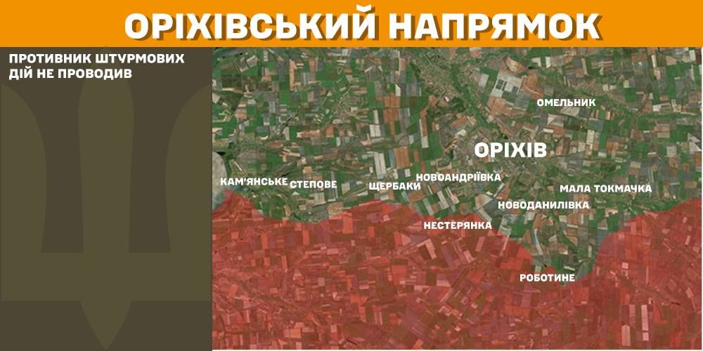 На Харьковском, Ореховском и Приднепровском направлениях за прошедшие сутки противник штурмовых действий не проводил.