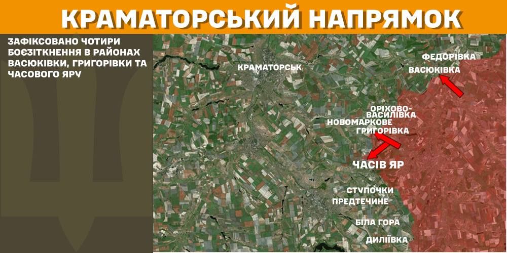 На Краматорском направлении зафиксировано 4 боестолкновения в районах Васюковки, Григорьевки и Часового Яра.