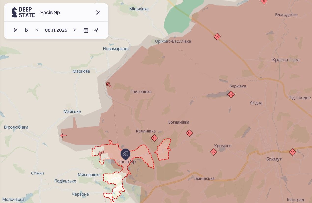 Ситуация в районе Часового Яра / Карта DeepStateMAP