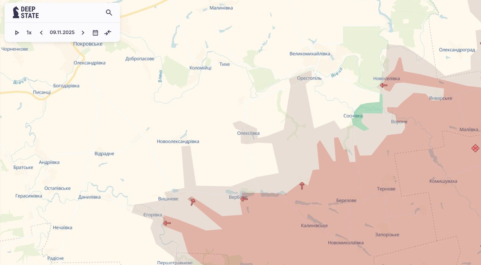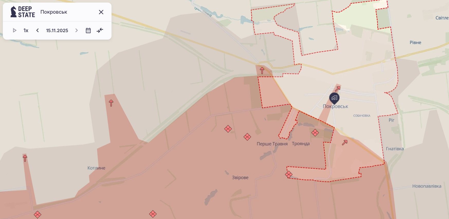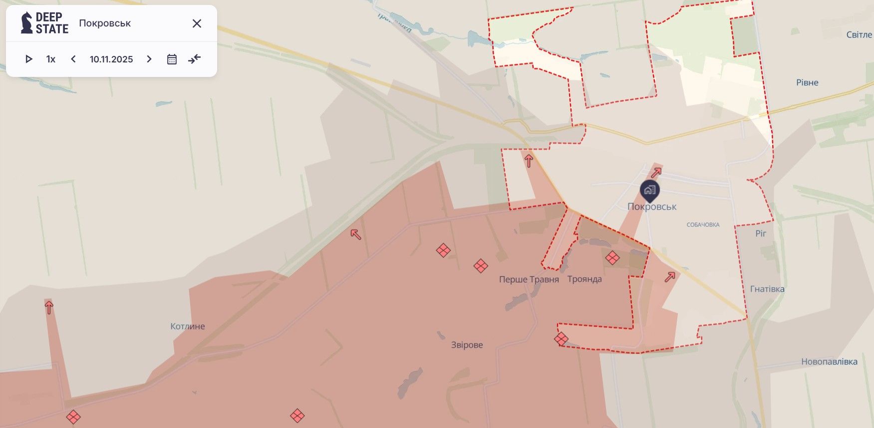 Покровск – основной эпицентр боев на фронте. Город является целью номер 1 для россиян. Поэтому сначала поговорим о ситуации там. Почти вся городская застройка Покровска теперь в серой зоне. Россияне продвинулись в районе автовокзала на юге города. Там же враг перешел улицу Защитников Украины, которая фактически сейчас является линией фронта.