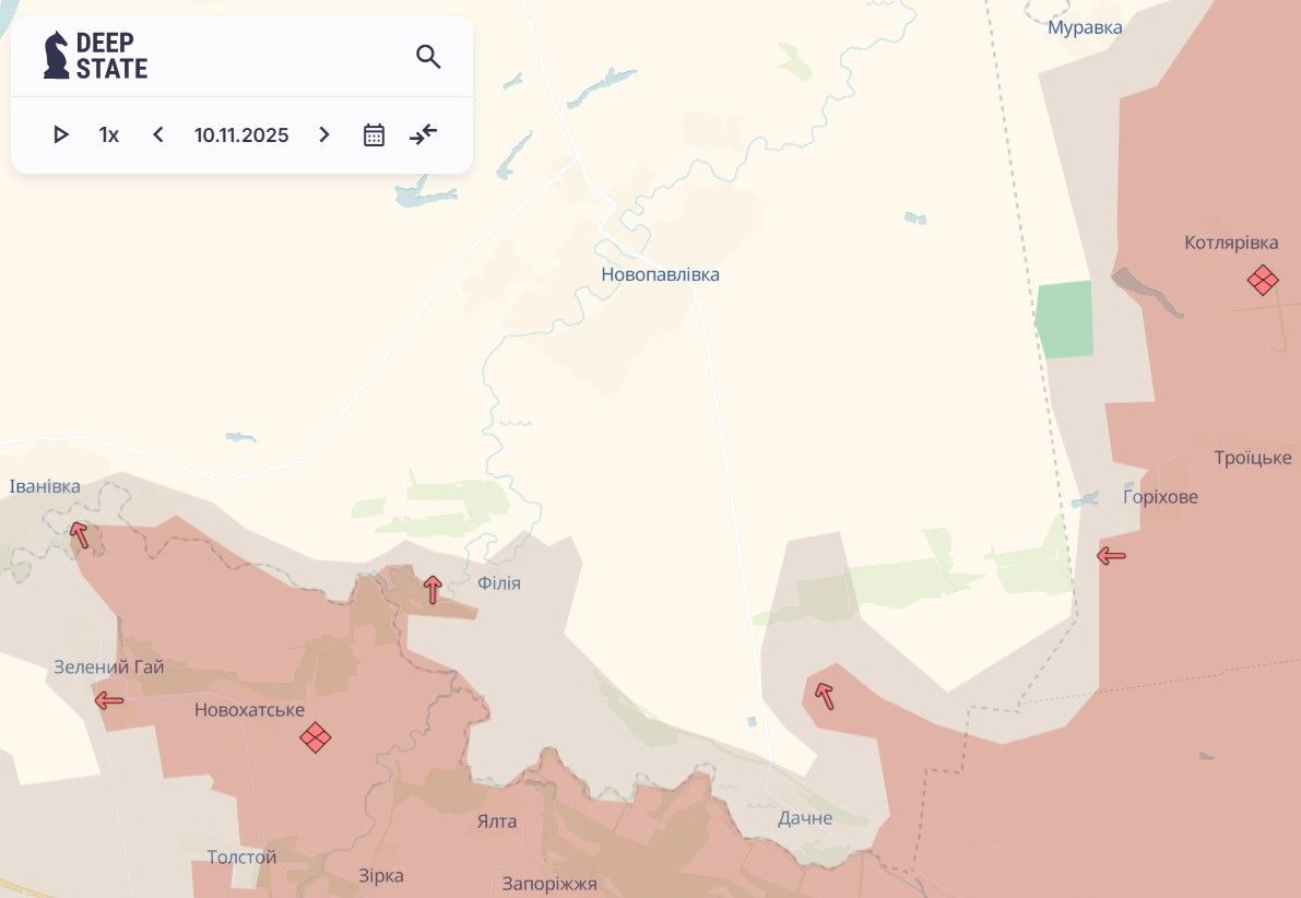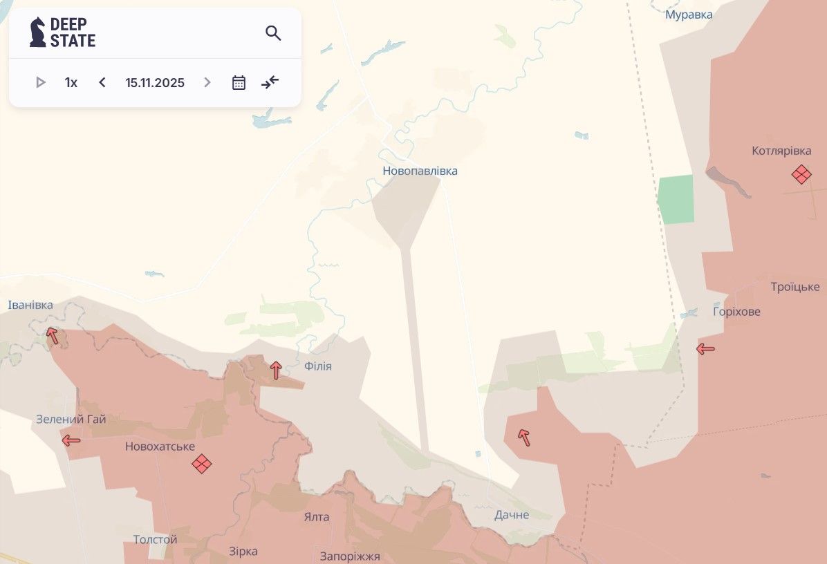 Ситуация в районе Новопавловки / Карта DeepStateMAP