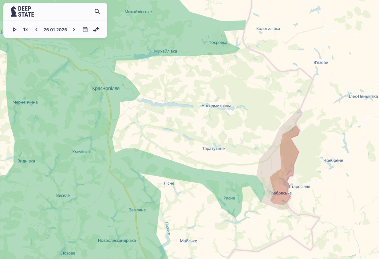 Прошедшая неделя была сложной для Сумкой области. Россияне продолжают осуществлять новые попытки прорывов в пограничные, особенно в районе Краснополья, где ранее оккупанты захватили село Грабовское. Российские войска на прошлой неделе продвинулись вблизи села, а также попытаться прорваться южнее Грабовского и севернее в районе Покровки. Оба участка сейчас в серой зоне.