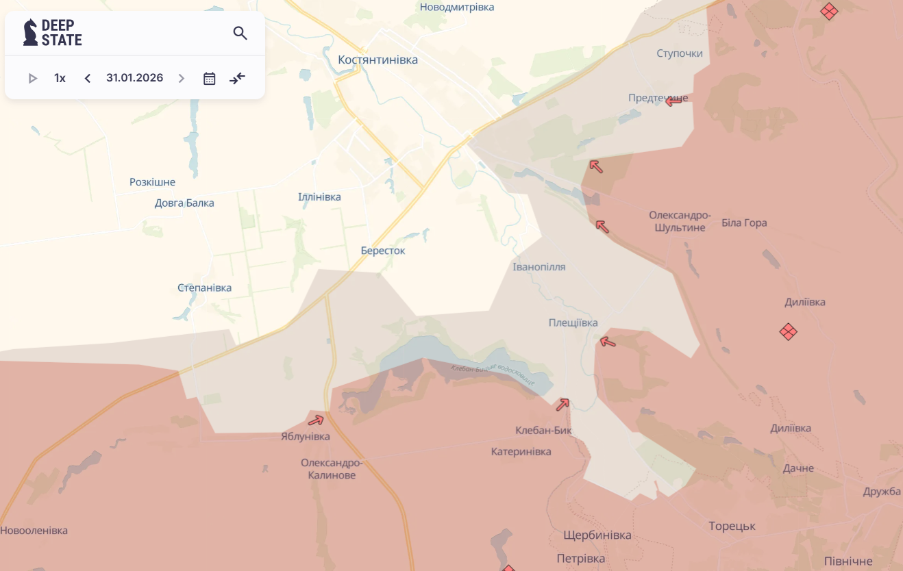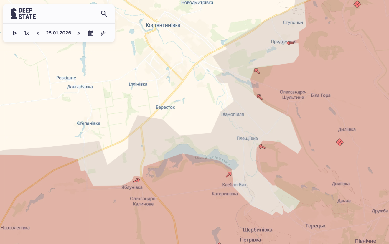 На Константиновском направлении расширилась серая зона вблизи самой Константиновки. Также российские войска оккупировали село Клебан-Бык, что севернее Торецка. Так называемый мешок, который был в районе села Клебан-Бык и северных окраин Торецка существенно сузился.