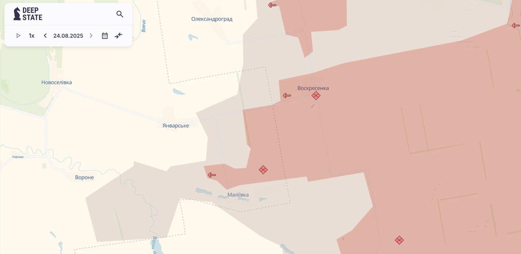 Еще один сложный участок – район села Малиевка Днепропетровской области на границе с Донецкой и Запорожской областями. Россияне продвинулись возле села, однако в самой Малиевке они не закрепились – она полностью в серой зоне. Серая зона также подошла под село Вороное.