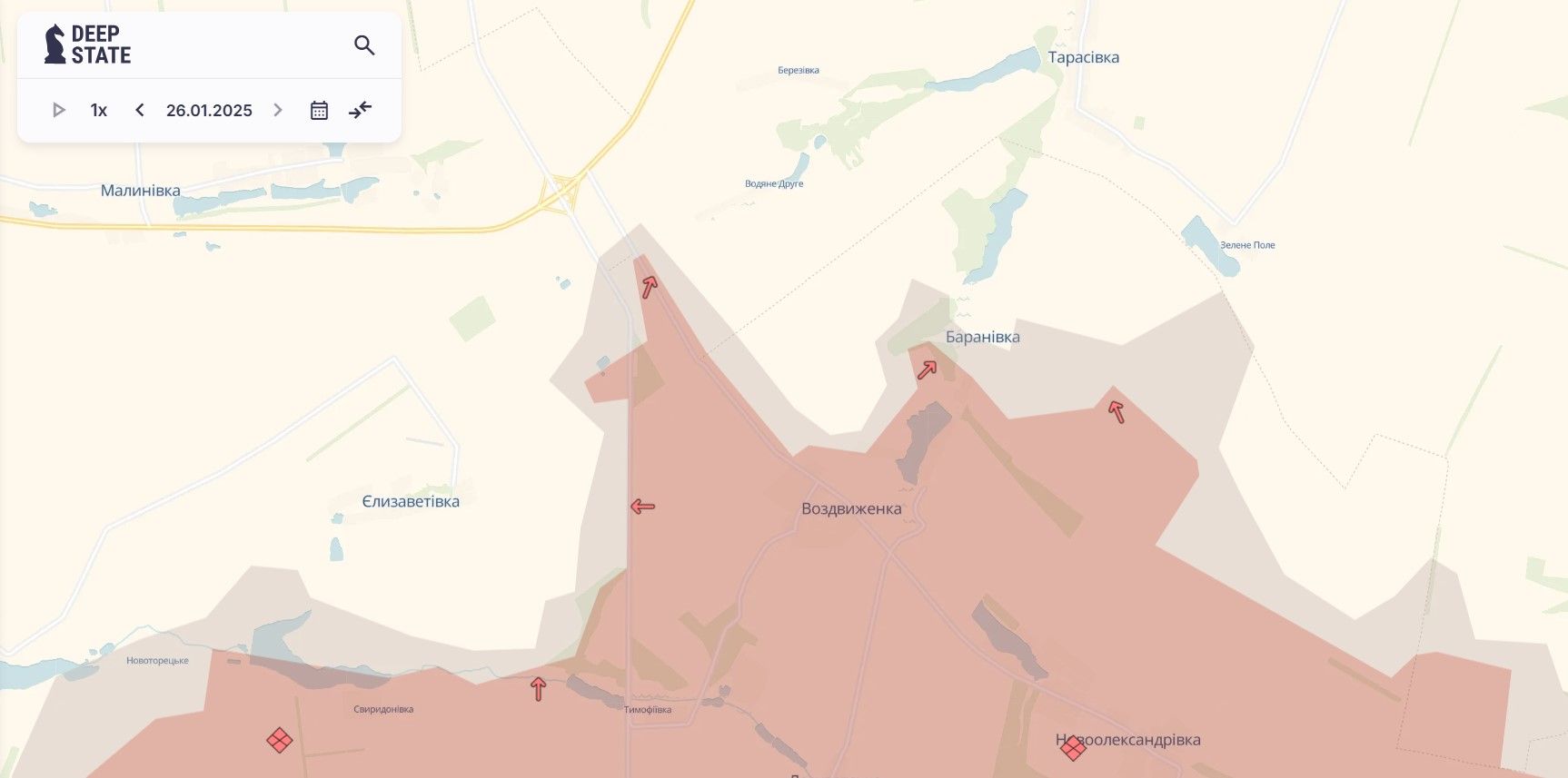 В районе Воздвиженки россияне почти дошли до трассы Покровск – Константиновка. Расстояние от линии фронта до дороги – около километра. Также враг штурмует Барановку и хочет продвинуться в направлении Елизаветовки.