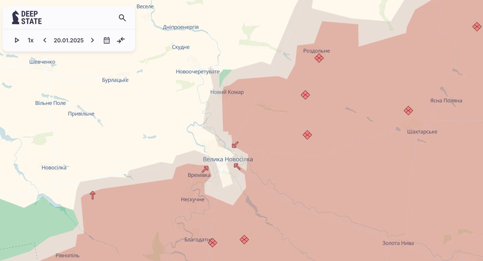 Ситуация в районе Великой Новоселки / Карта DeepStateMAP