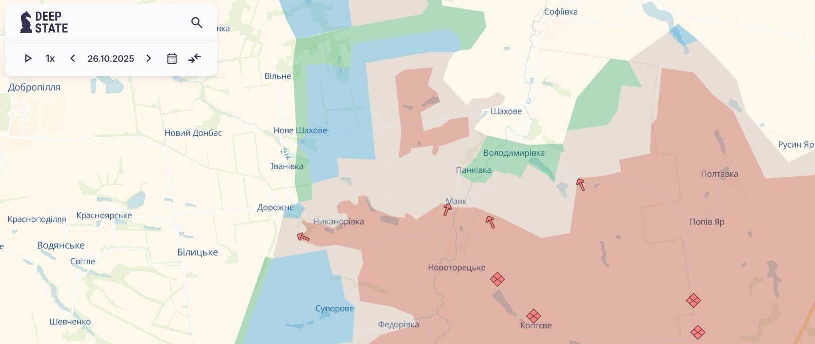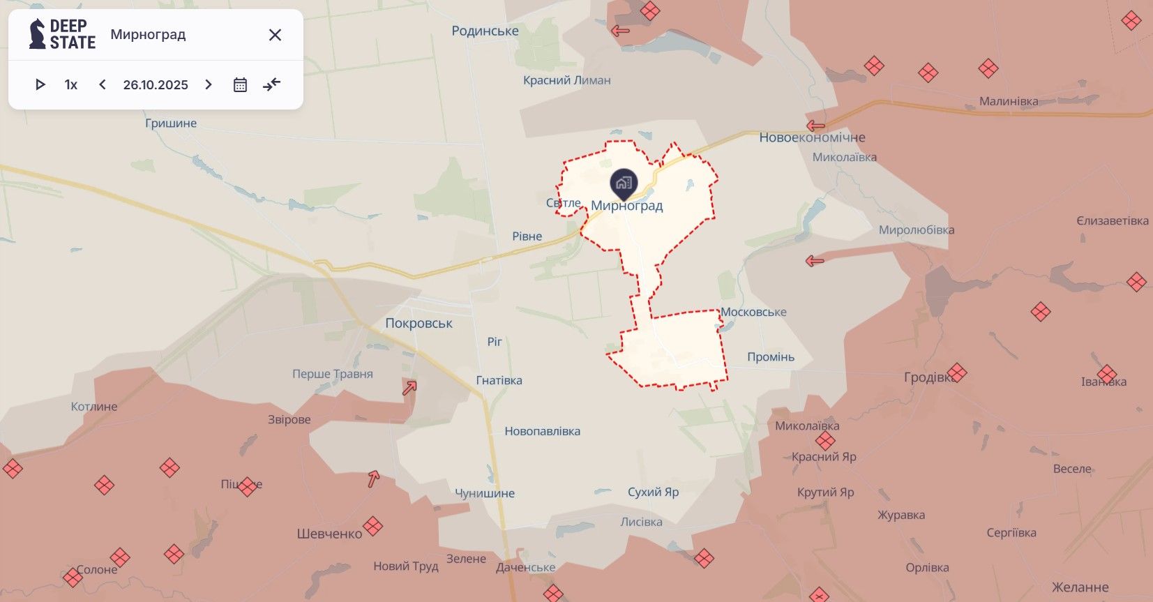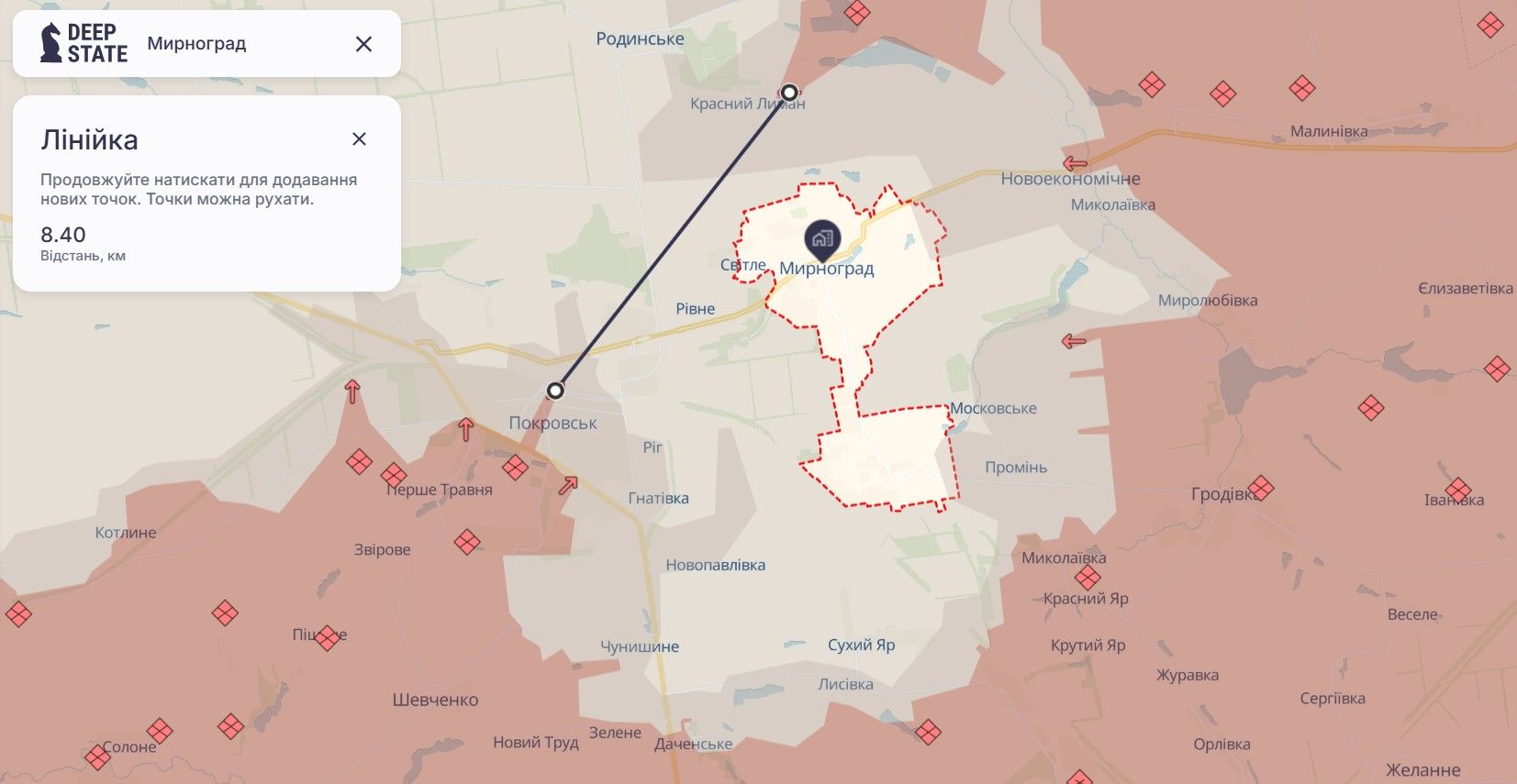 Серая зона достигла восточных и южных окраин Мирнограда. Однако ухудшает ситуацию продвижение россиян в Красном Лимане, которые с одновременным прорывом россиян в Покровске создают большую угрозу окружения. Расстояние между позициями россиян в Покровске и в Красном Лимане – 8 километров. Враг пытается в дальнейшем продвигаться для замыкания кольца, чтобы окружить весь гарнизон, обороняющий Покровско-Мирноградскую алгомерацию.
