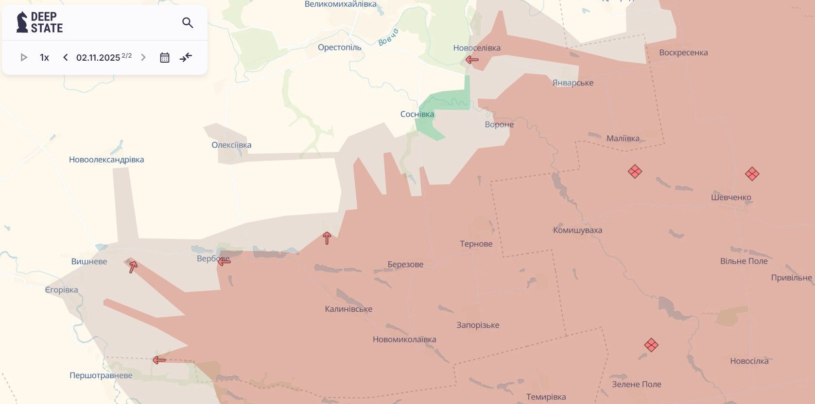 Ситуация в Запорожской области / Карта DeepStateMAP