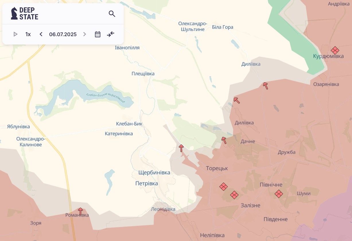 На прошлой неделе россияне продвинулись в самом Торецке, возле Дылеевки и Нелиповки. По трассе из Донецка в направлении Константиновки продвижений на прошлой неделе не было.
