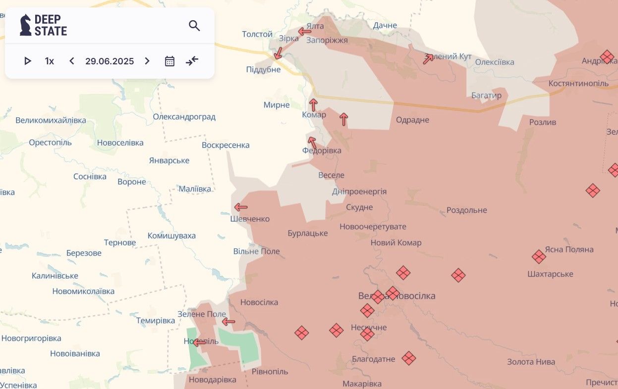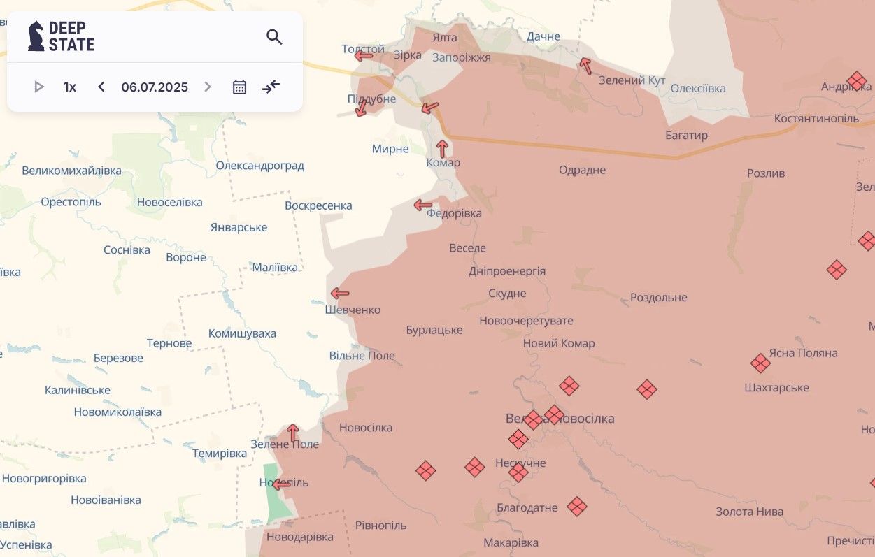 Новопавловское направление остается самым сложным по темпу продвижения российских войск. На прошлой неделе враг захватил значительную часть села Богатырь, оккупировал Зеленый Кут и Новоукраинку, продвинулся в Звезде, Ялте Федоровке и возле Веселого, прорвался в Толстой и Поддубное. Также россияне захватили территорию между Комаром и Запорожьем, которая была в серой зоне.