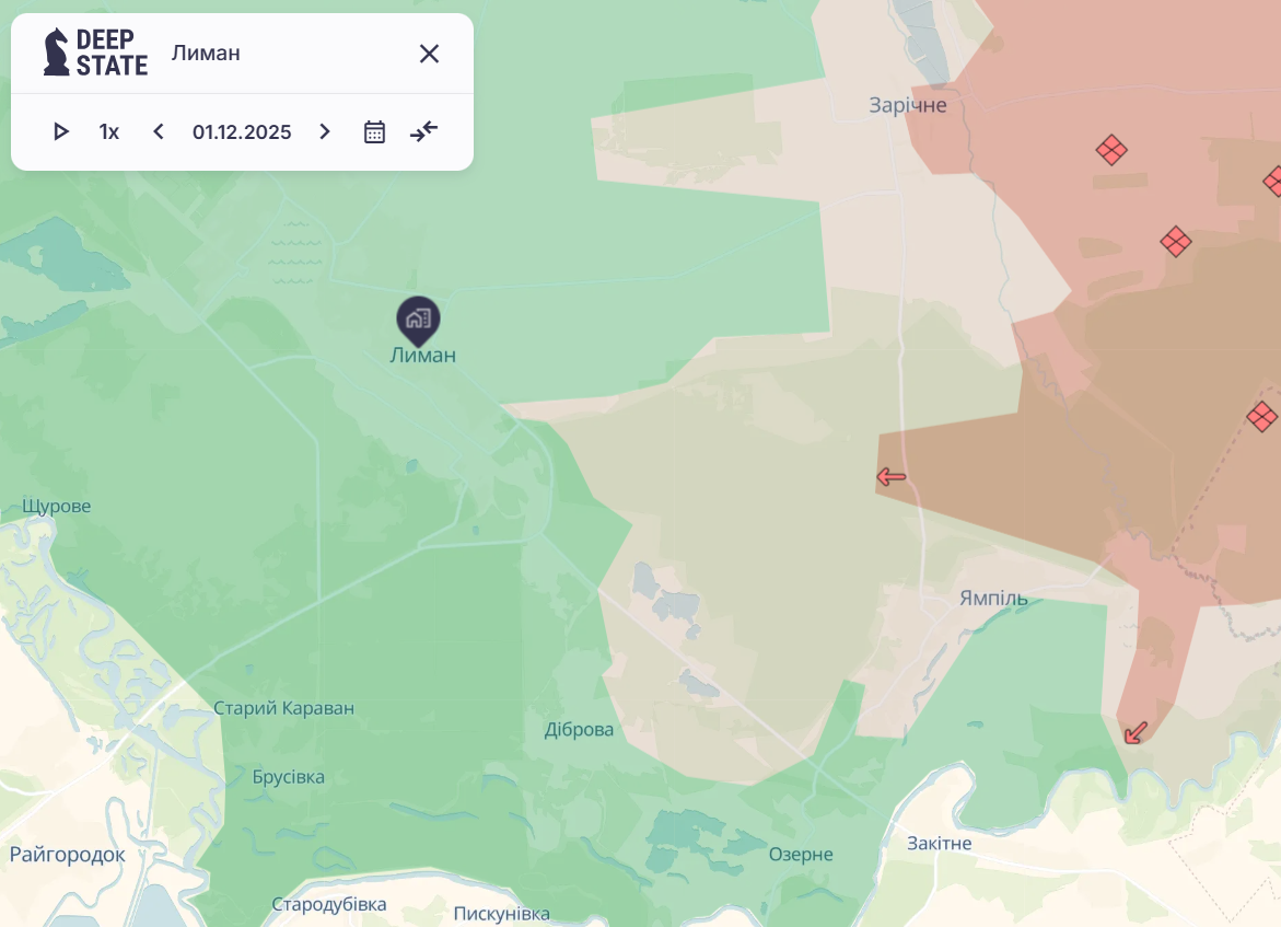 Ситуация в районе города Лиман / Карта DeepStateMAP