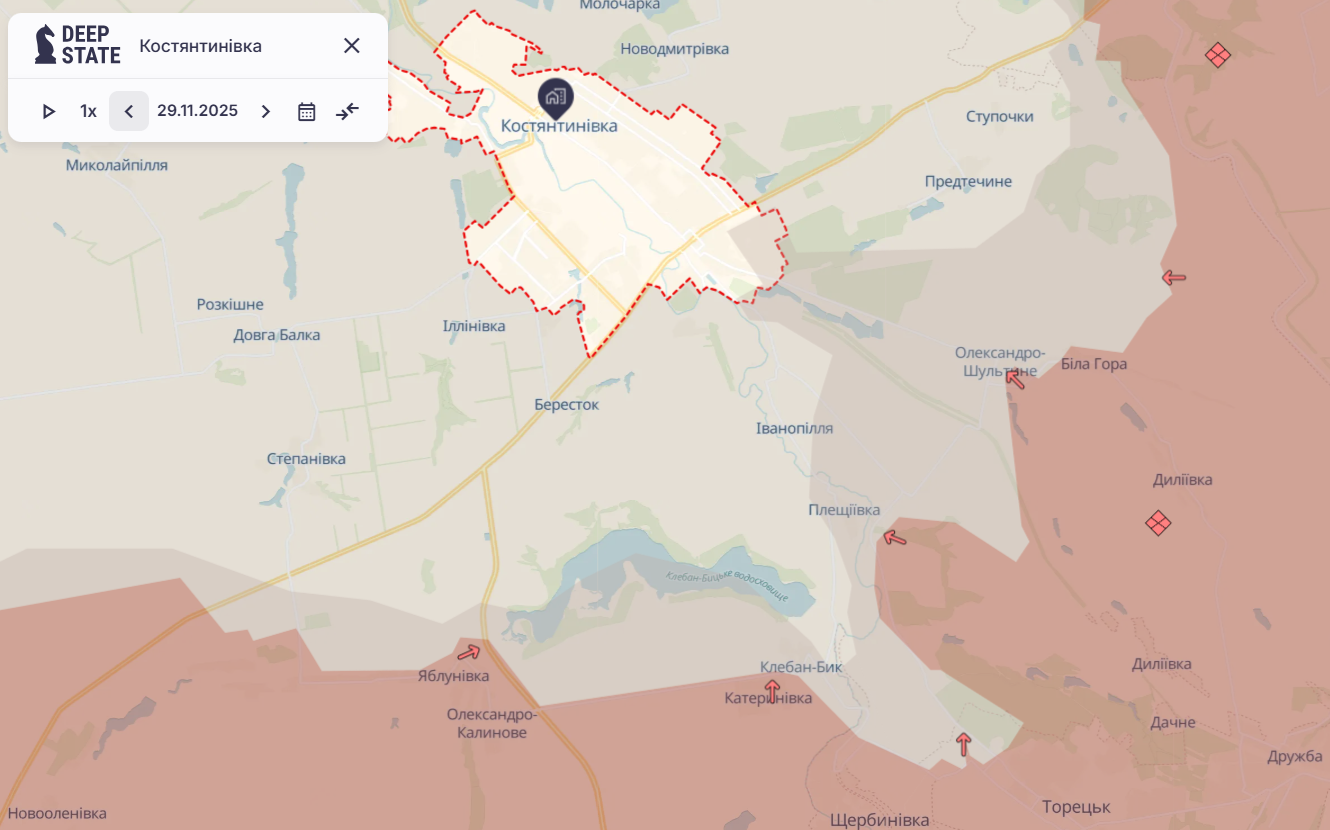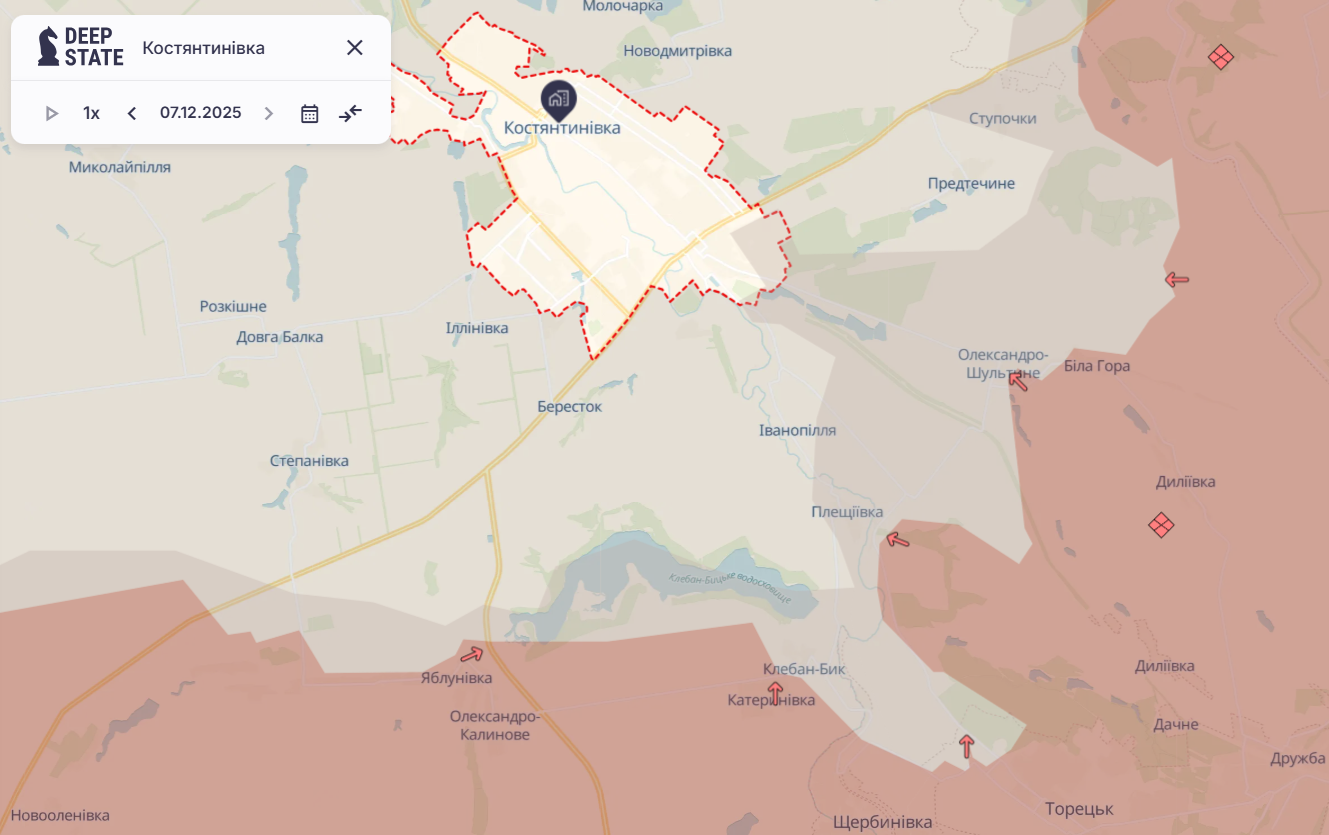 Ситуация в районе Константиновки / Карта DeepStateMAP