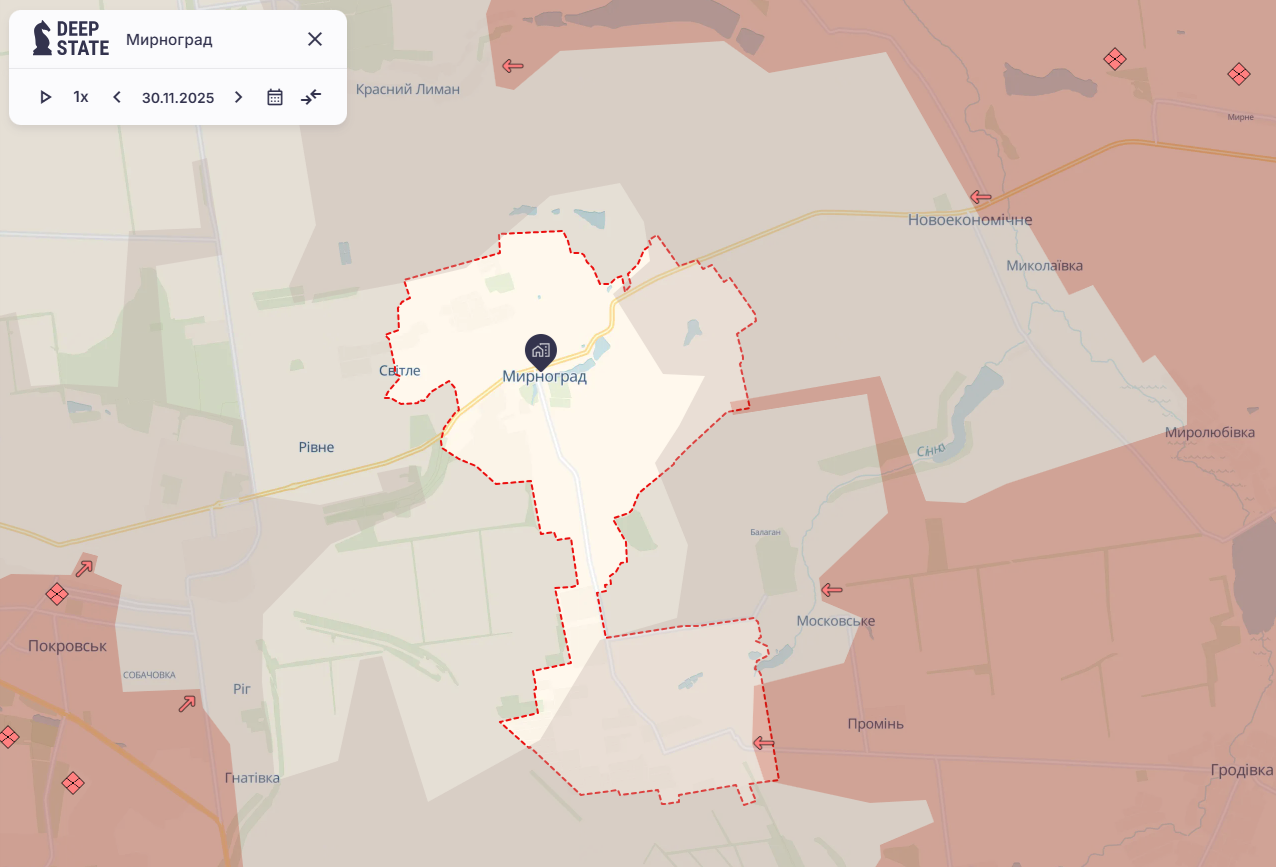 Ситуация в Мирнограде / Карта DeepStateMAP
