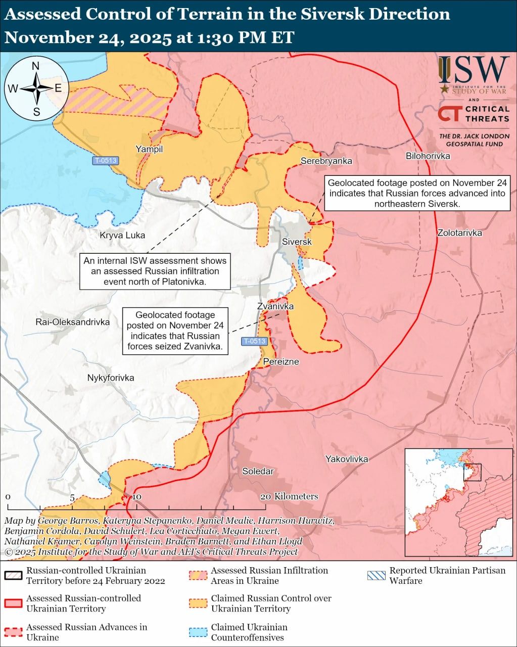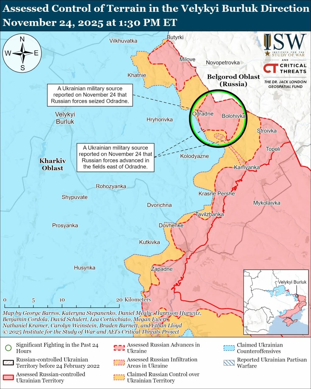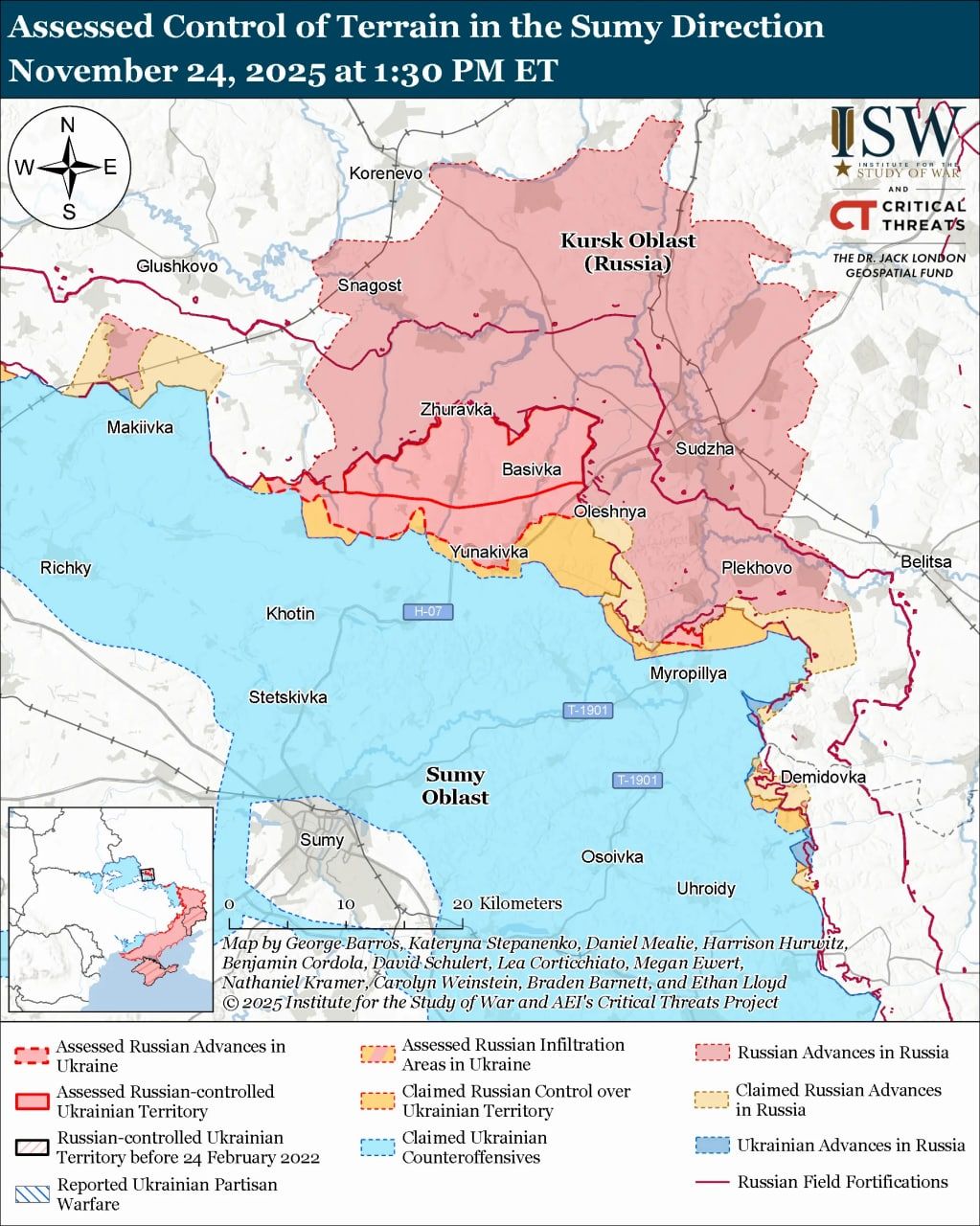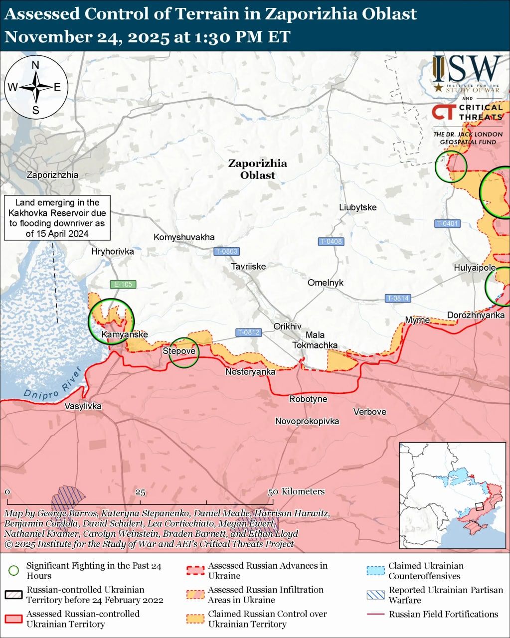 24 ноября российские войска продолжили наступательные операции на Херсонском направлении, но не продвинулись вперед.