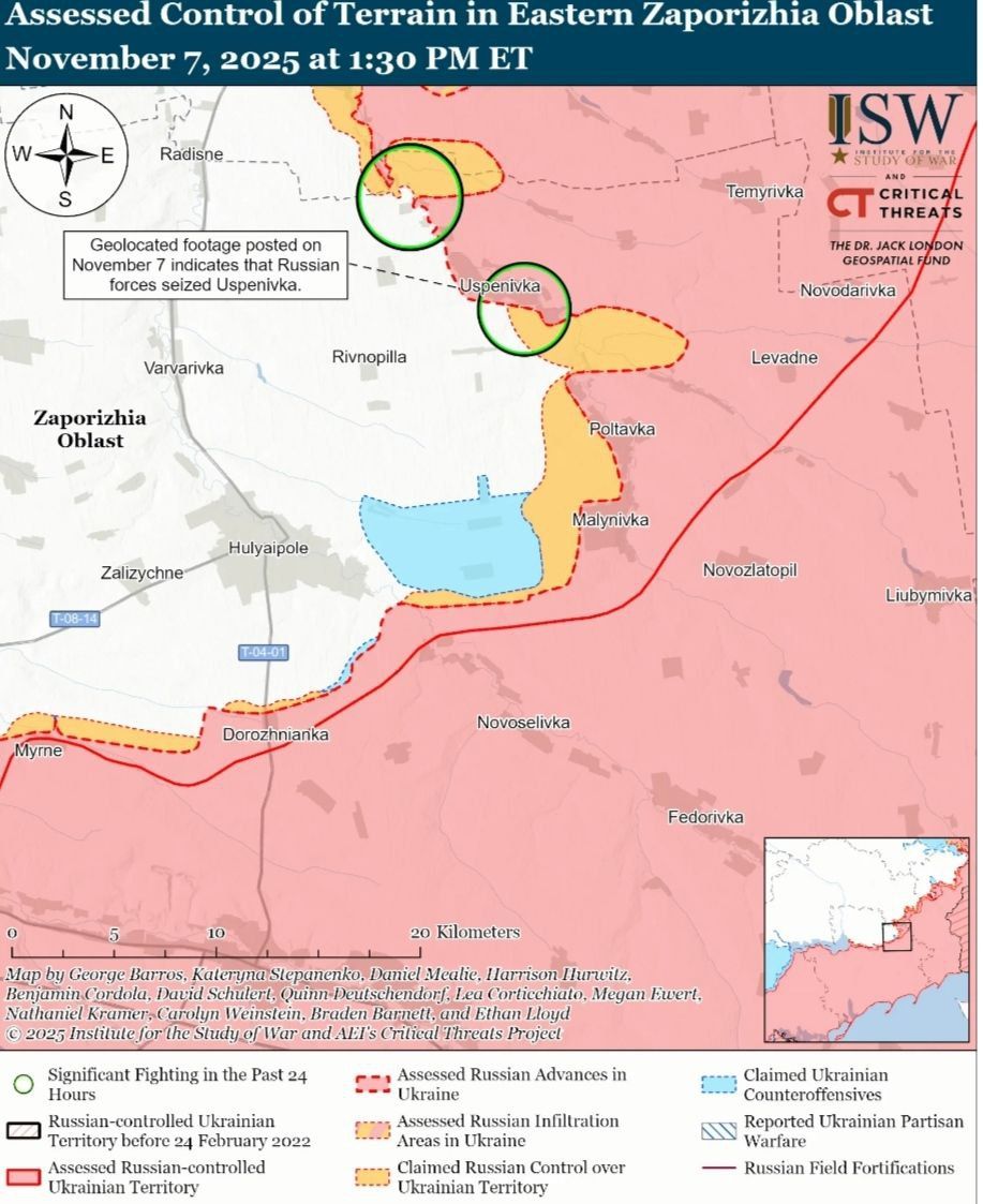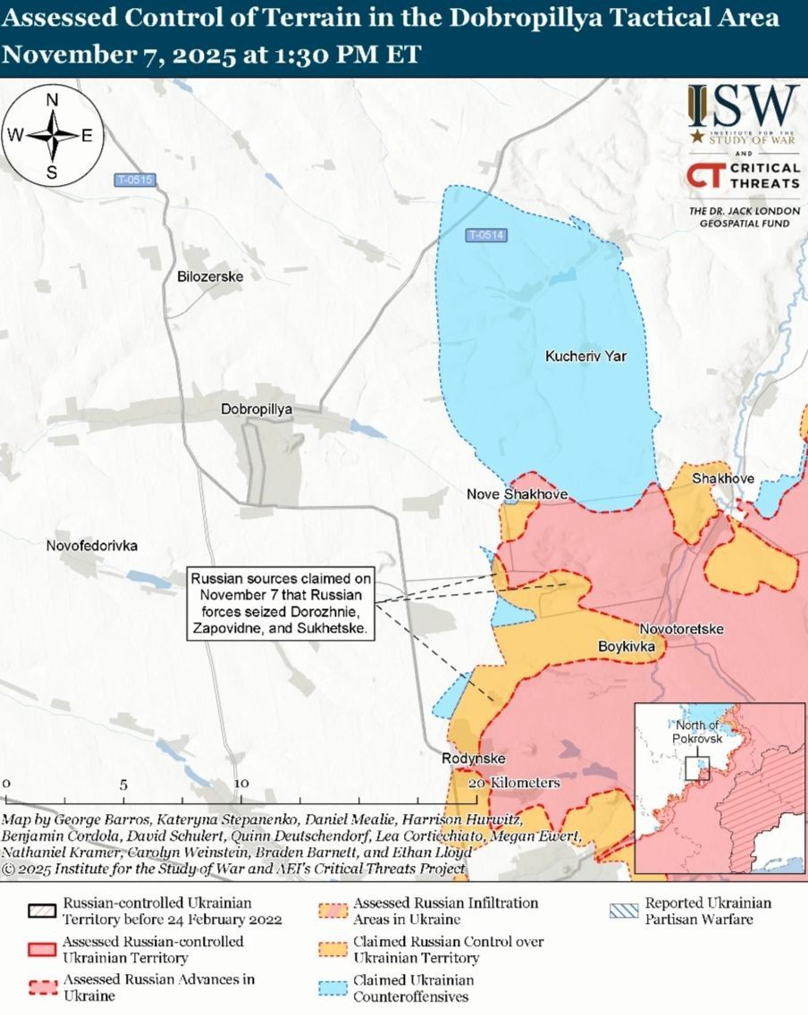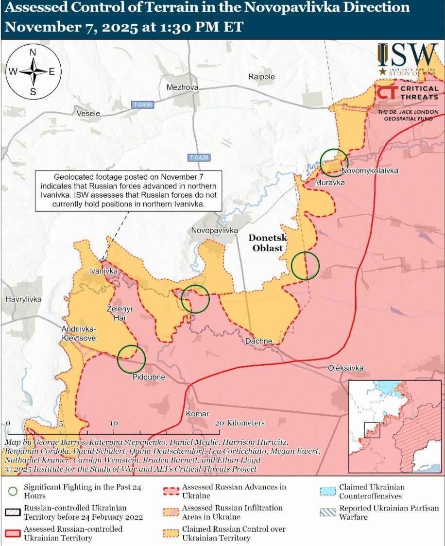 - Российские войска продолжали наступательные операции на Великомихайловском направлении 7 ноября, но не достигли подтвержденного прогресса.