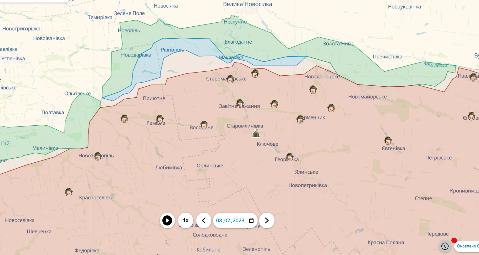 В то же время еще более существенно продвижение вблизи административной границы Запорожской и Донецкой областей. Здесь украинские защитники продолжают шаг за шагом выбивать врага с оккупированных земель.