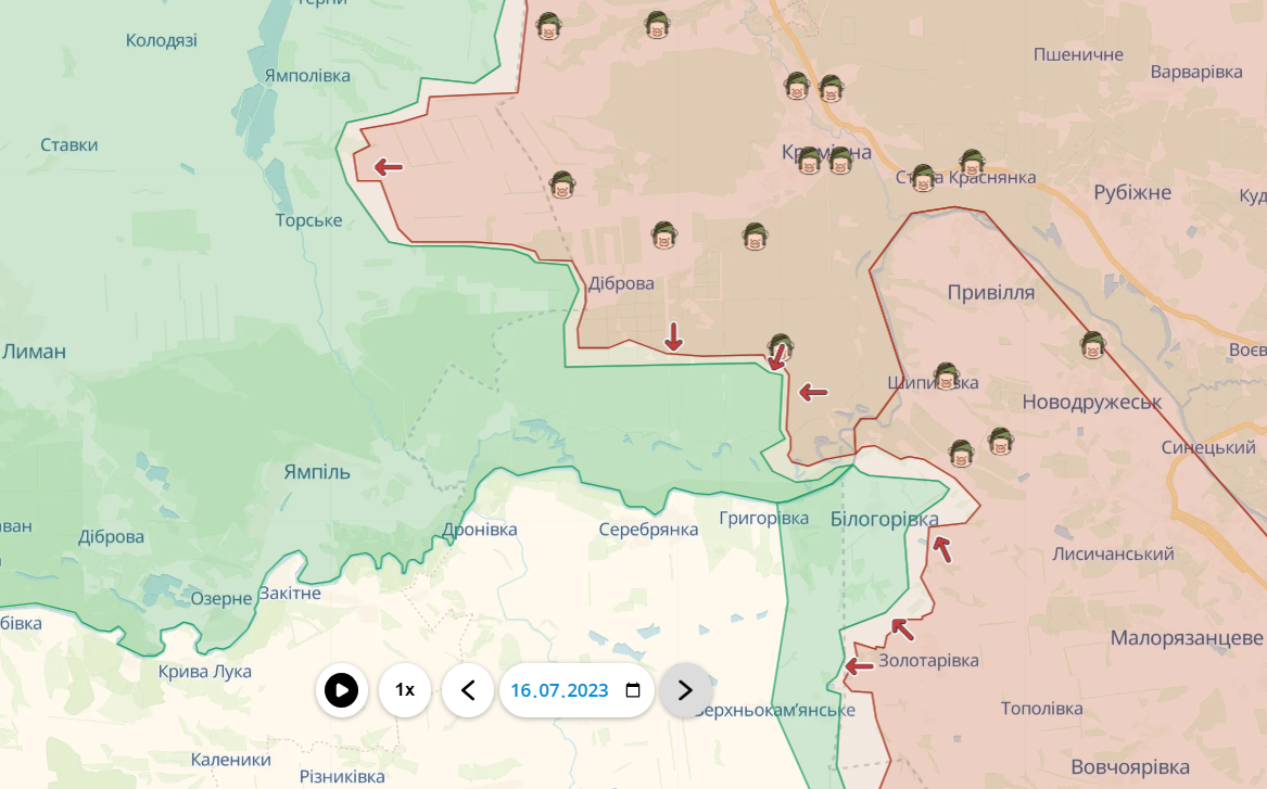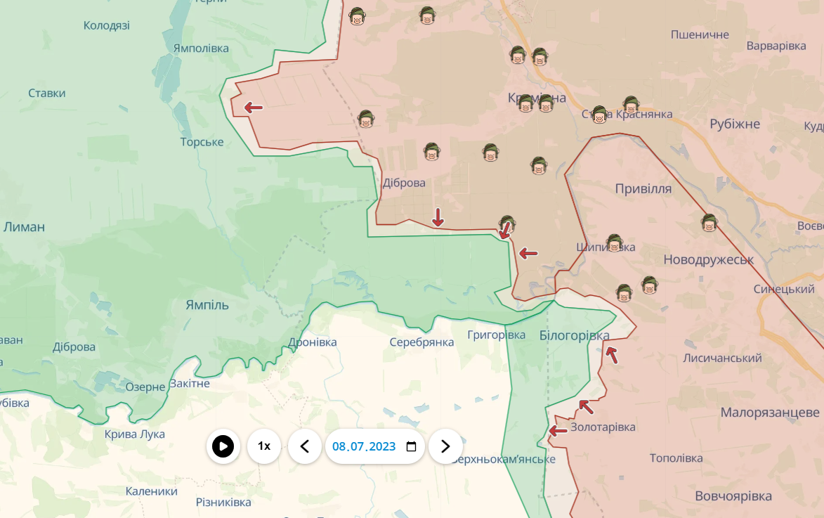 Пока на предыдущих направлениях продолжаются наступательные операции украинских войск, россияне тоже пытаются идти в наступление на других участках фронта – из Сватового пытаются продвигаться в сторону Купянска, а из Кременной готовят плацдарм для наступления на Лиман.