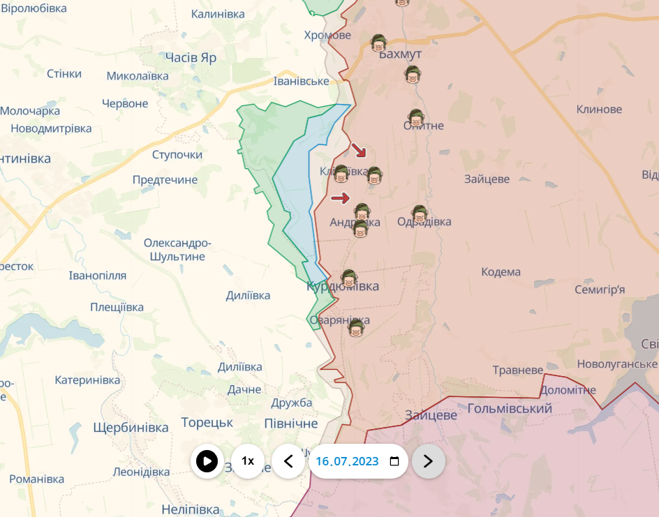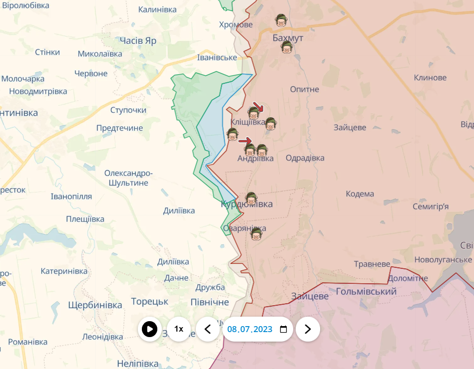 Также украинские силы продолжили свое продвижение и на флангах вокруг Бахмута. Уже несколько недель подряд Силы обороны подходят все ближе и ближе к Клещиевке.