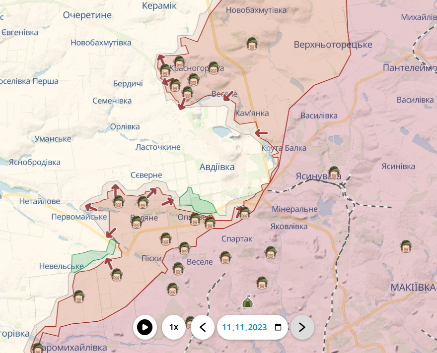 Несмотря на отсутствие полноценной инициативы, российское командование продолжает бросать свои войска на постоянные штурмы Авдеевки. Хотя говорить о возможном окружении украинских сил еще слишком рано, россияне продолжают улучшать собственный плацдарм в районе Красногоровки.